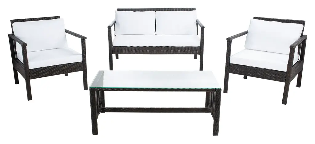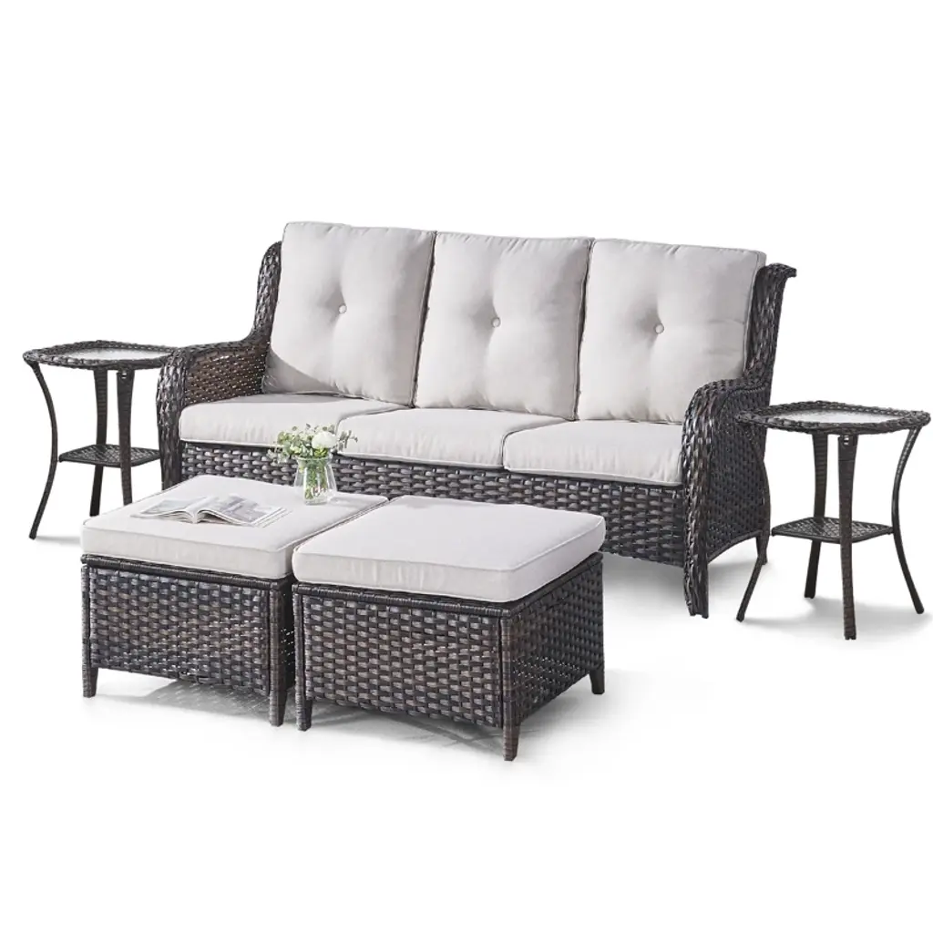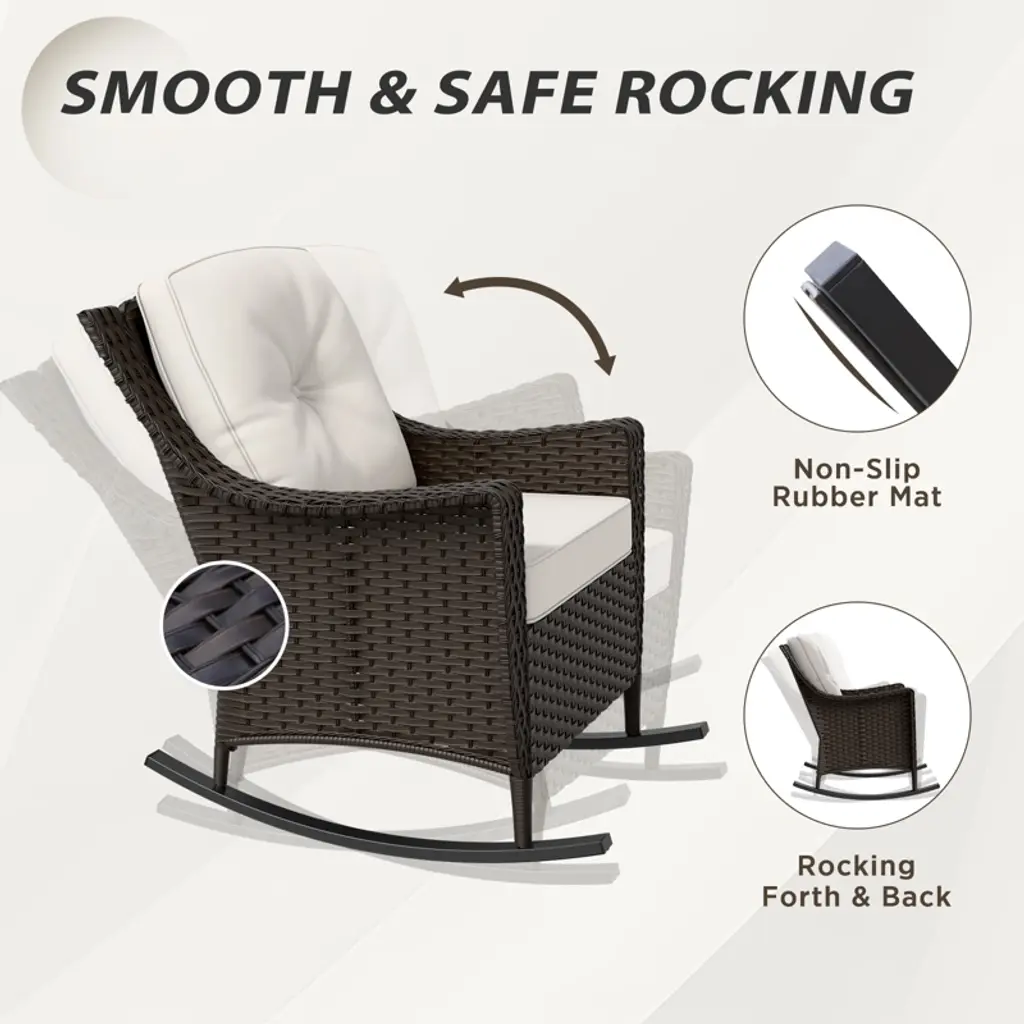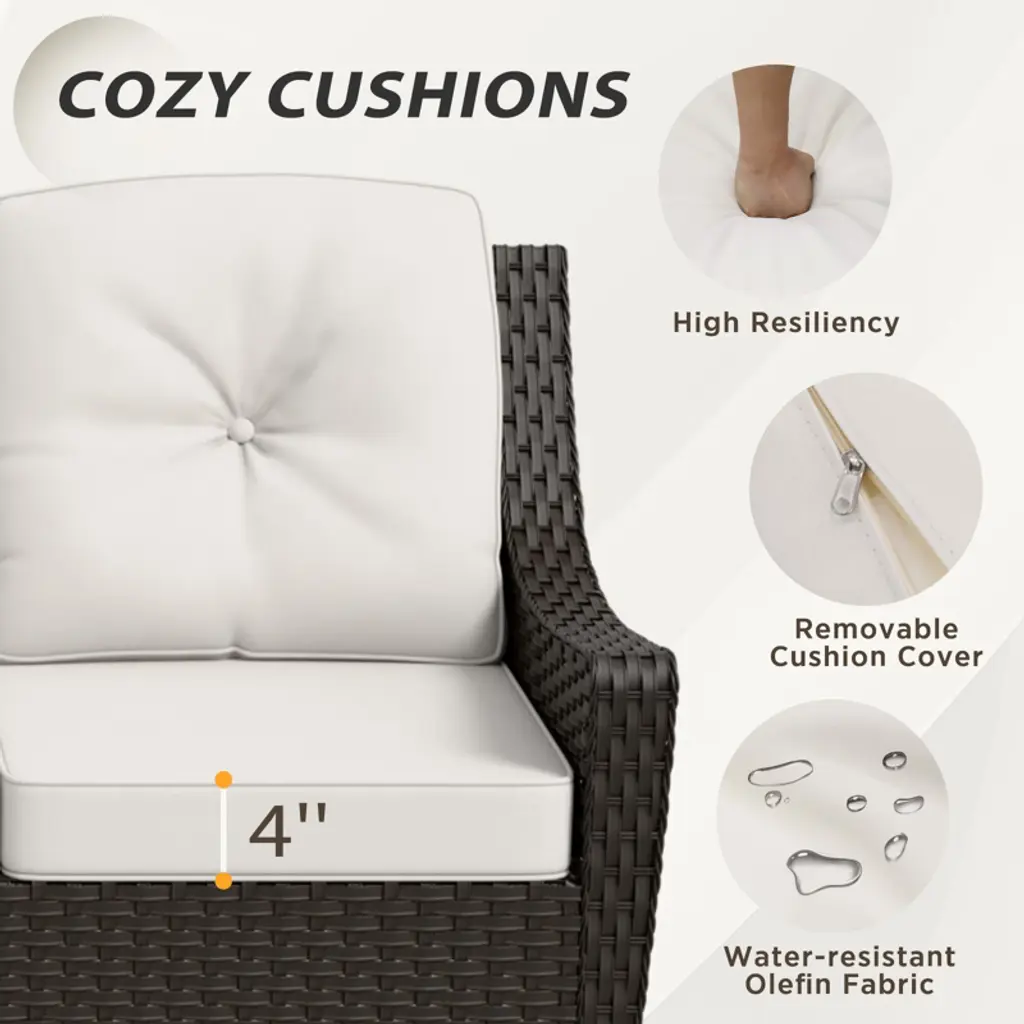 The EAGLE PEAK outdoor patio chair set is made with high-quality PE wicker and a sturdy frame. Cozy cushions and wide armrests provide comfort, and the all-weather design ensures durability in any season. The classic brown wicker complements patios, gardens, or poolside areas.