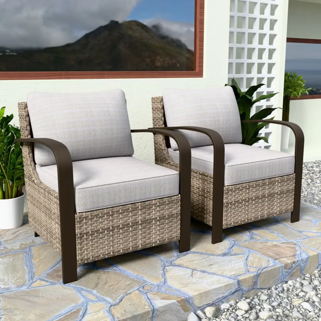 Eagle Peak Coastal Vista Patio Chair With Cushions, Outdoor Ratten Wicker Lounge Chair With Deep Seating, Contains 2, Beige