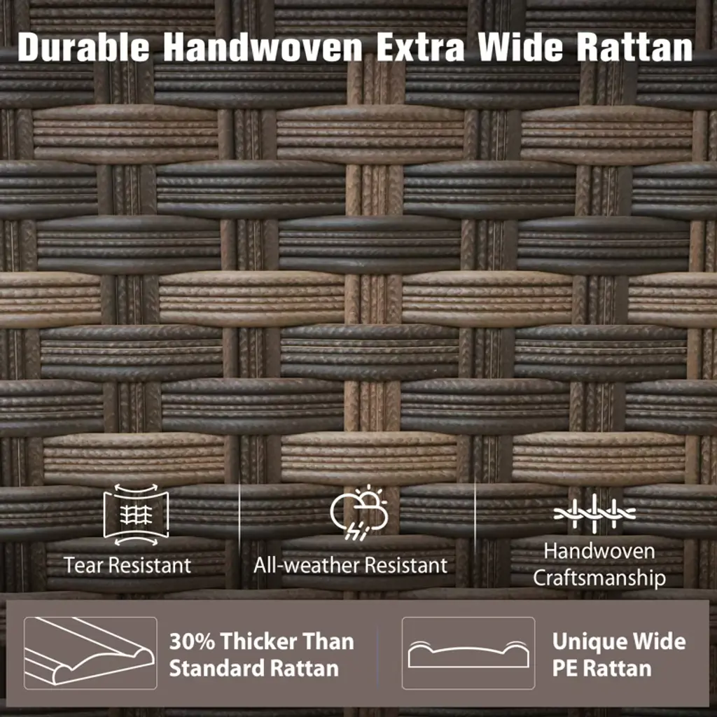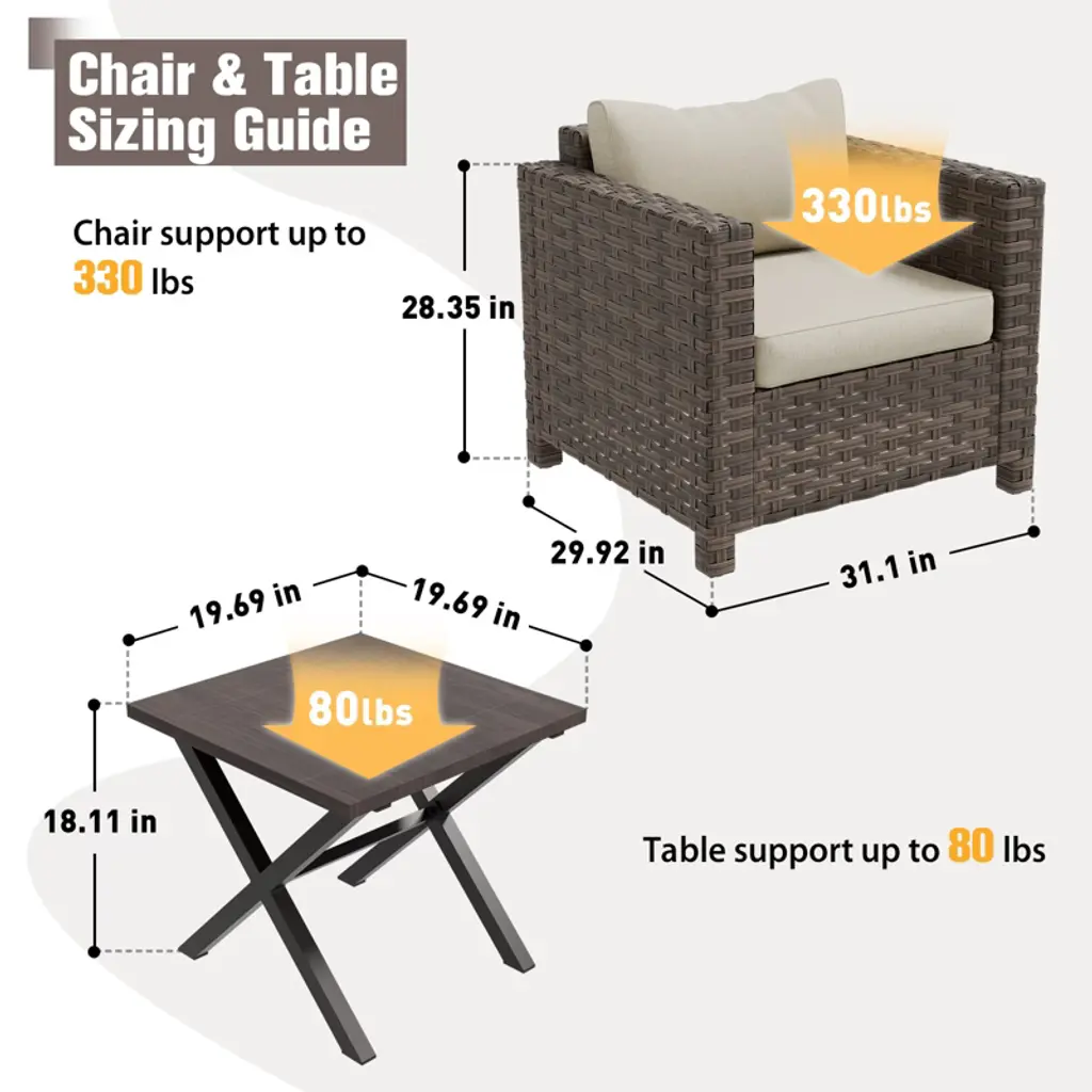Transform your patio, balcony, or garden into a cozy retreat with our beautifully crafted outdoor furniture collection. This versatile set features two generously proportioned wicker chairs paired with a matching side table, designed to create an inviting atmosphere for relaxation and conversation. Constructed with premium, all-weather PE wicker over sturdy metal frames, the set combines lasting durability with effortless style. The weatherproof materials resist fading, moisture, and temperature changes, maintaining their elegant appearance season after season with minimal care. Thoughtfully designed for modern living, the space-efficient layout fits perfectly in compact areas while delivering exceptional comfort. The chairs' ergonomic design and breathable wicker construction ensure cool comfort during warm-weather lounging.