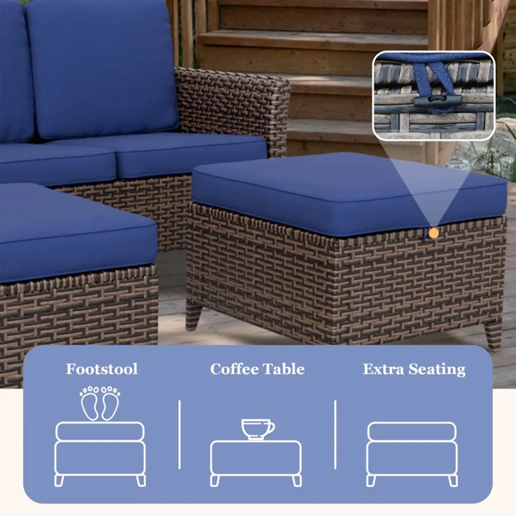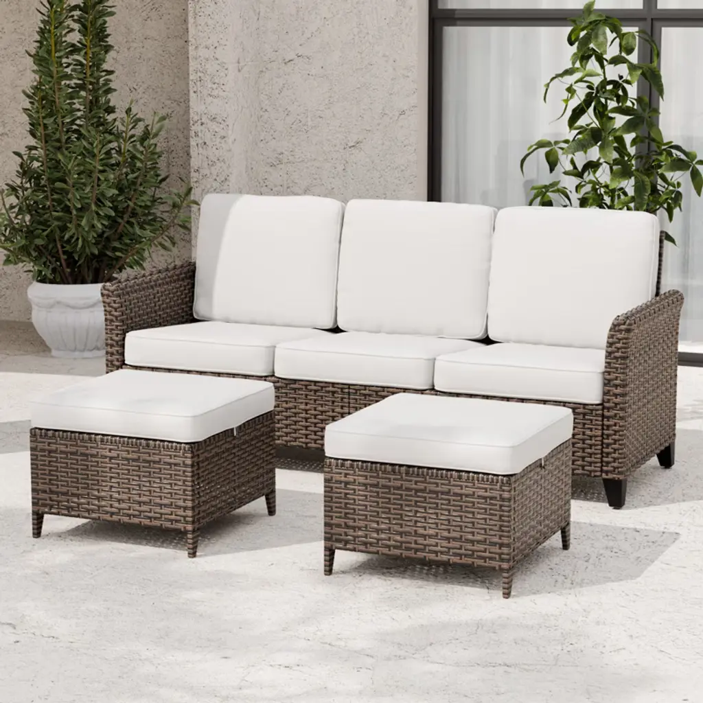 Our patio wicker conversation set blends traditional style with modern elegance, perfect for any outdoor space. Rich brown tones match existing decor. The chairs, made from all-weather PE wicker and a powder-coated steel frame, are durable and easy to maintain. Ergonomic armrests and backrests provide comfort, and 4-inch cushions with removable zippers add convenience. Includes all installation accessories and instructions.