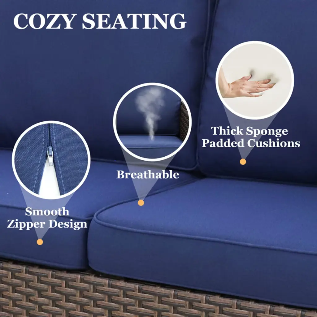 Our patio wicker conversation set seamlessly blend the timeless aesthetics of traditional styles, infusing your patio with an air of sophistication and unparalleled elegance. The harmonious blend of rich brown hues effortlessly complements your existing decor, making it the quintessential addition to any outdoor living space that simply cannot be overlooked. Crafted from all-weather PE wicker and a meticulously powder-coated steel frame, the chair boasts exceptional durability while remaining remarkably easy to maintain. The ingeniously designed stretch armrests and ergonomically contoured back provide you with the ultimate relaxation experience. With its plush 4-inch seat cushion adorned in luxurious softness, complete with a convenient built-in zipper for effortless cleaning, every aspect of comfort has been thoughtfully considered. Rest assured that this exquisite piece comes accompanied by all necessary installation accessories and comprehensive instructions.