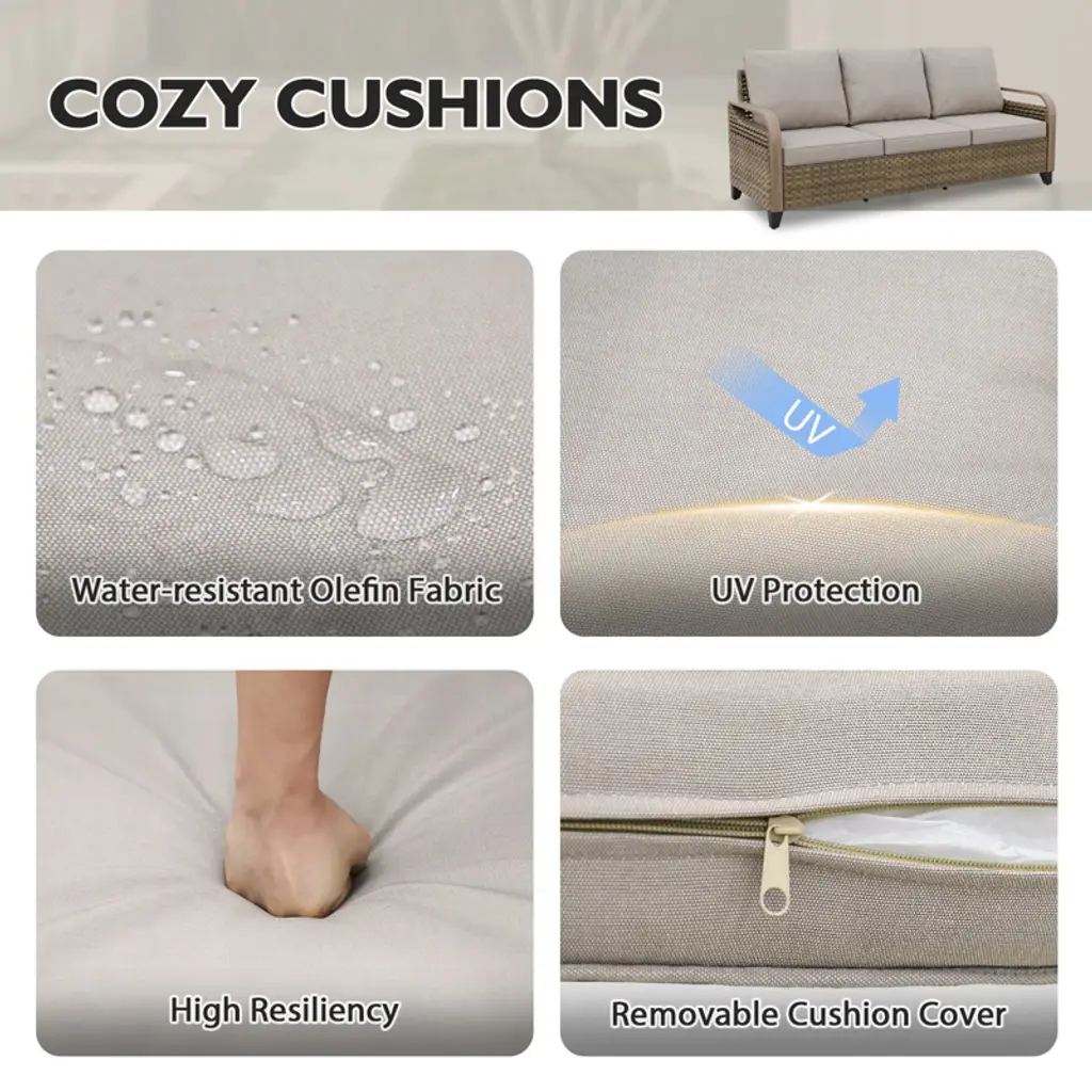 This outdoor rattan furniture set offers a variety of combination options, including outdoor chairs, swivel rockers, a three-seater double sofa, coffee tables and side tables. It is suitable for any space such as gardens, balconies, terraces, porches, pool sides, backyards, corridors or sunrooms, transforming your outdoor area into a stylish relaxation spot.