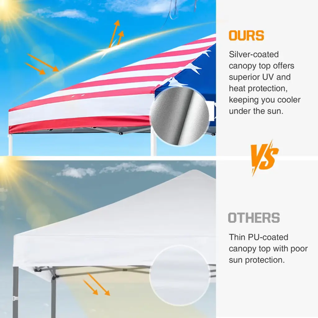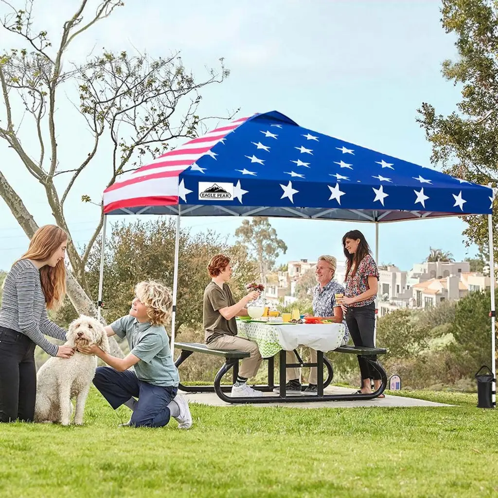 Eagle Peak Pop Up 10x10 Ft Canopy Tent With Wheeled Carry Bag, American Flag
