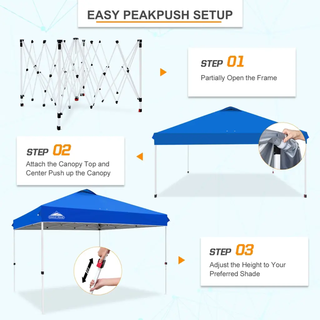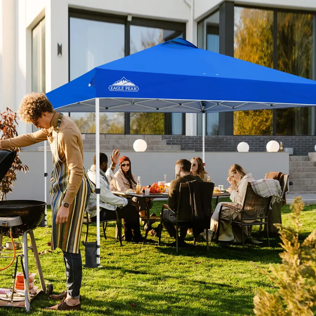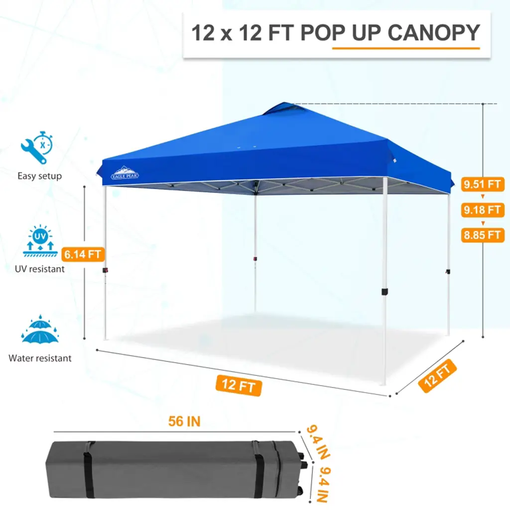 Eagle Peak Pop Up Canopy Tent With Wheeled Carry Bag, 12x12 Ft, 144sqft Of Shade, Blue