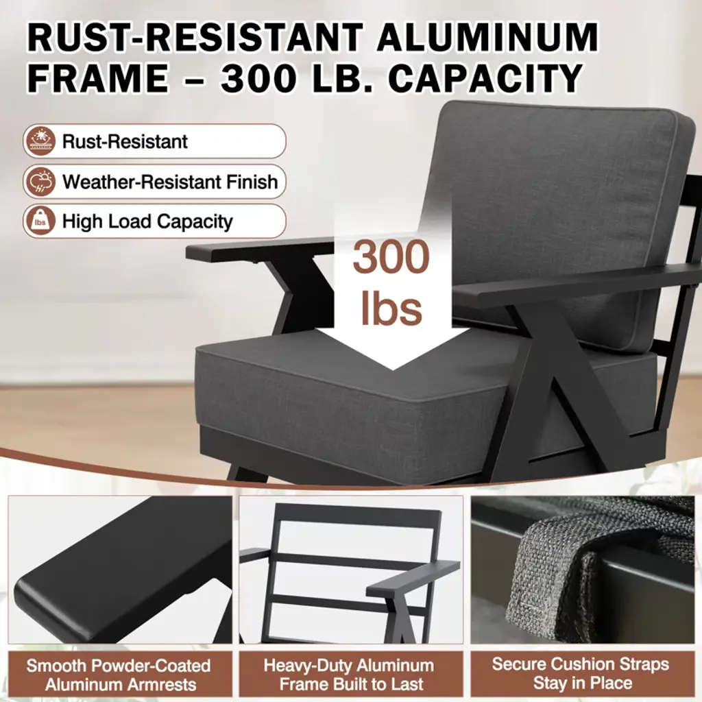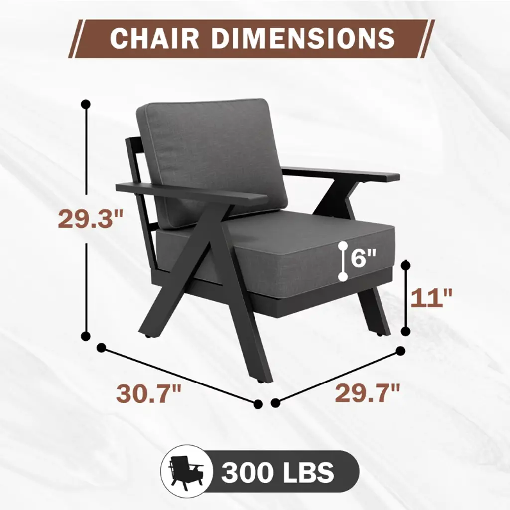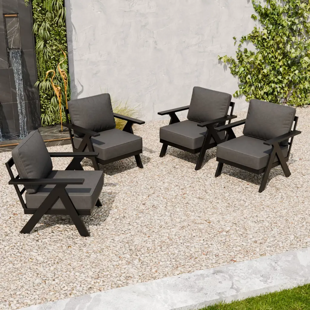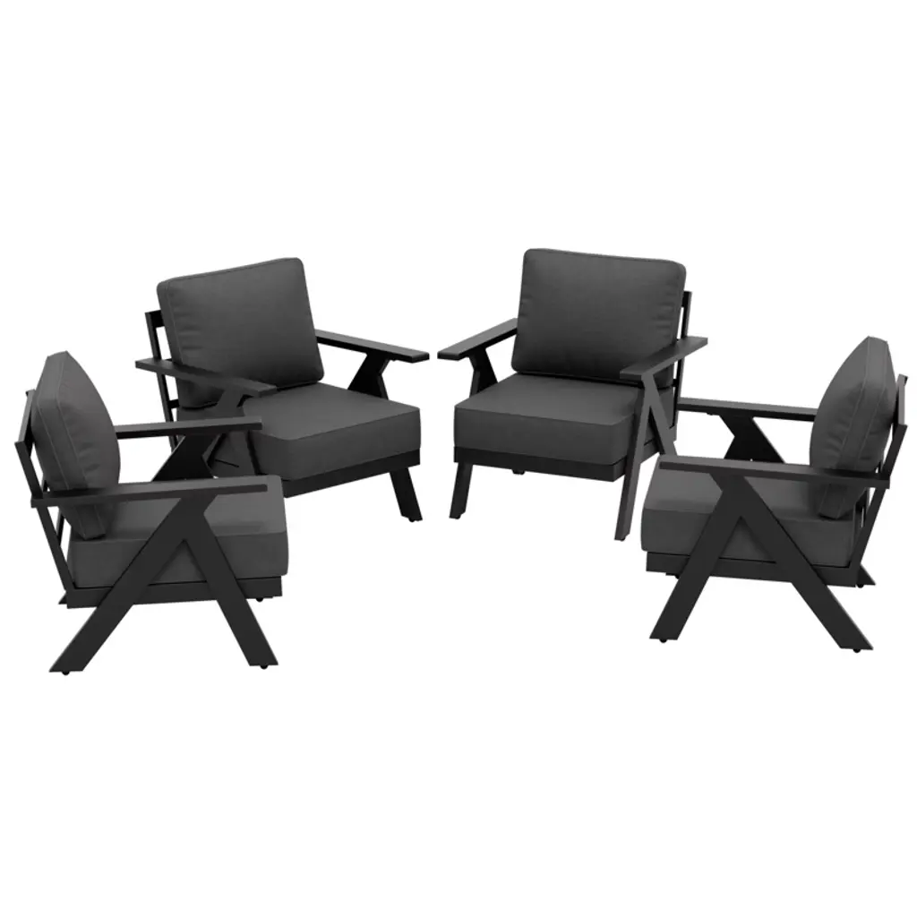 Eagle Peak Urban Slate Modern Patio Accent Chair Set Of 4 With Thick Cushions, Black/gray