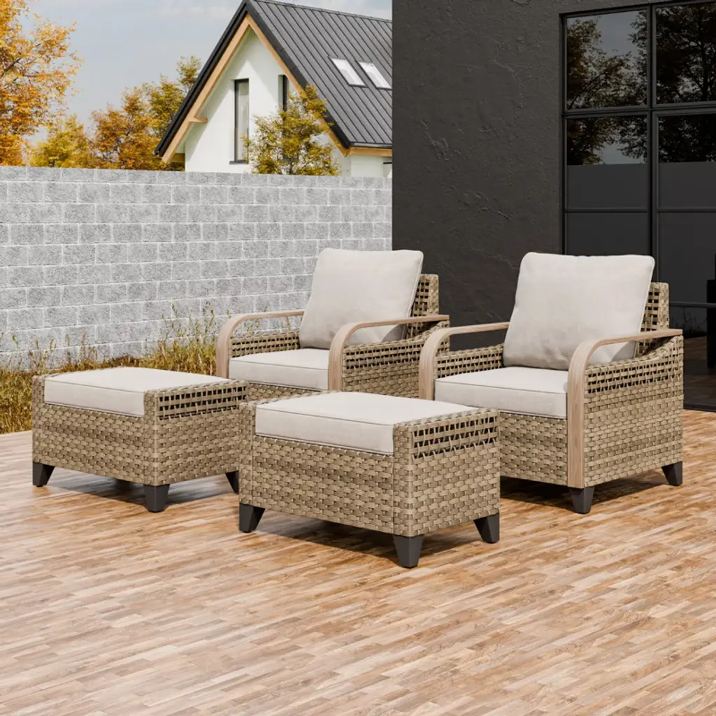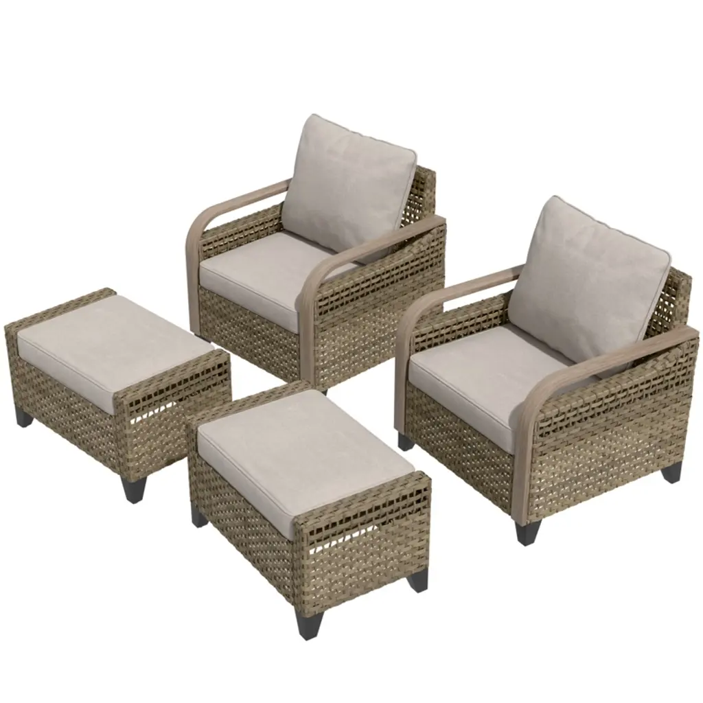 Eagle Peak Wicker Outdoor Chair, Patio Chair Curved Armrest, 2 Chairs 2 Ottomans, 4 Pieces, Brown/gray