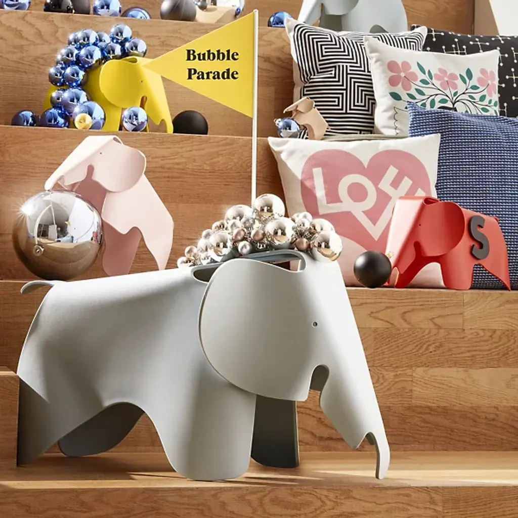 The Vitra Eames Elephant Small is a scaled down version of the iconic plywood version created in 1945. This petite variety is made of robust plastic and has an almost origami-like form. Slightly whimsical yet fun, this playful animal can be used as a child's toy or displayed anywhere or a more youthful decorative approach.