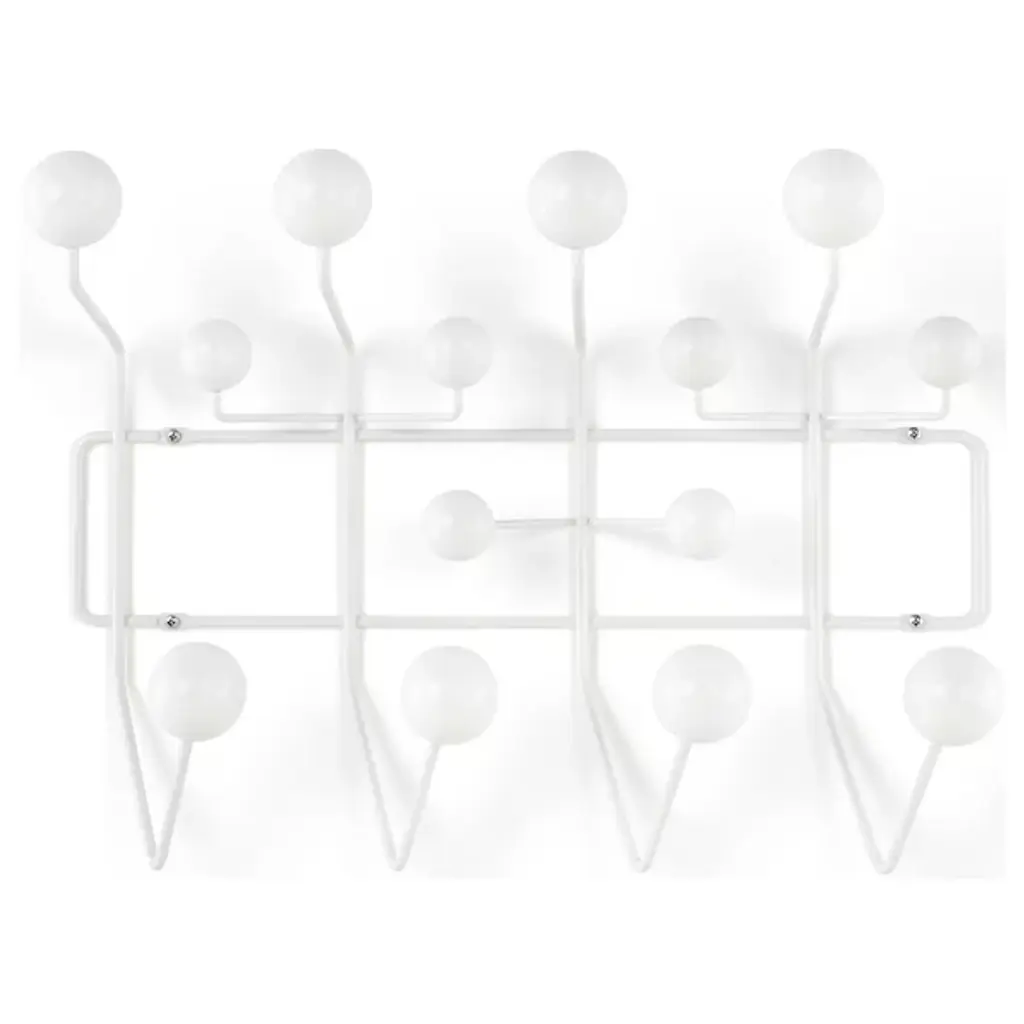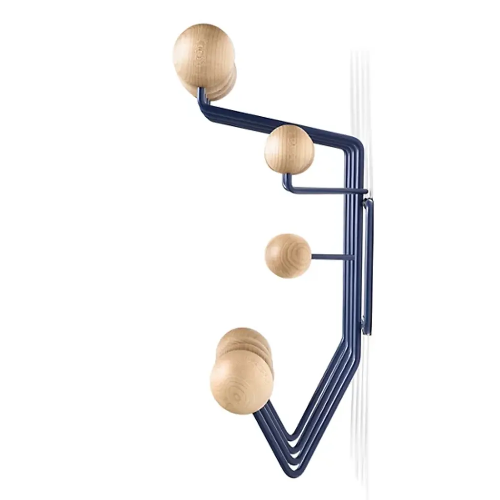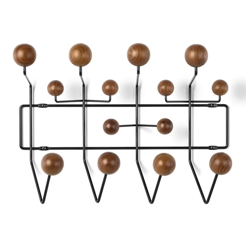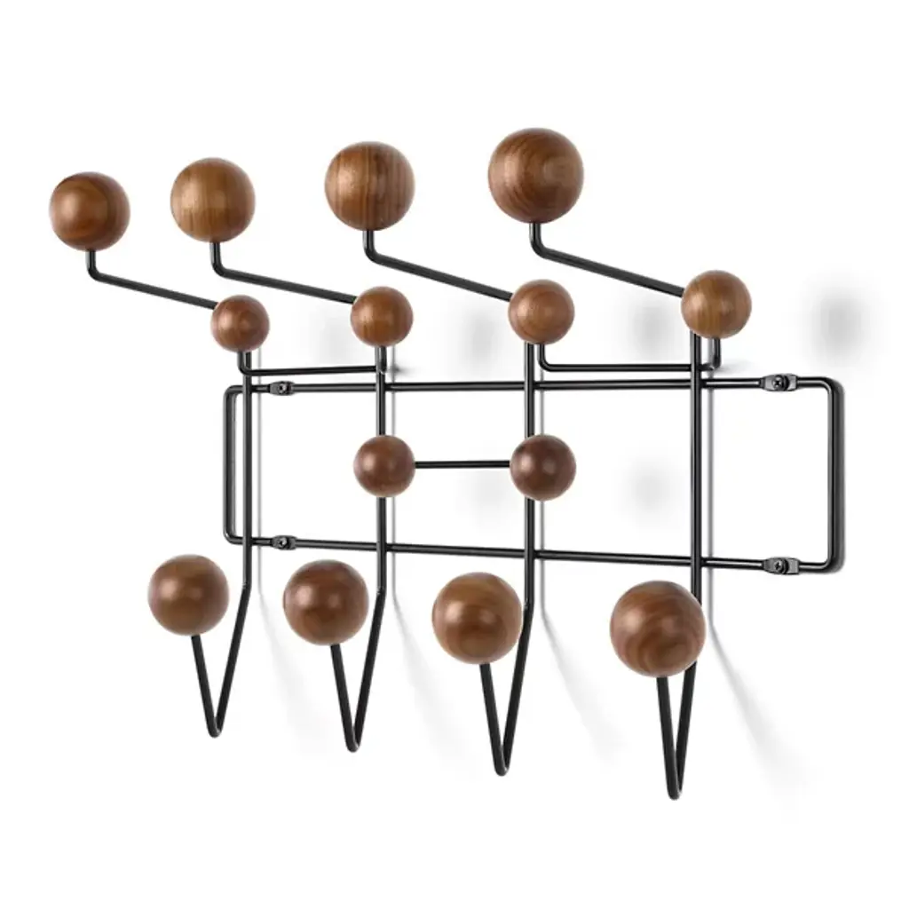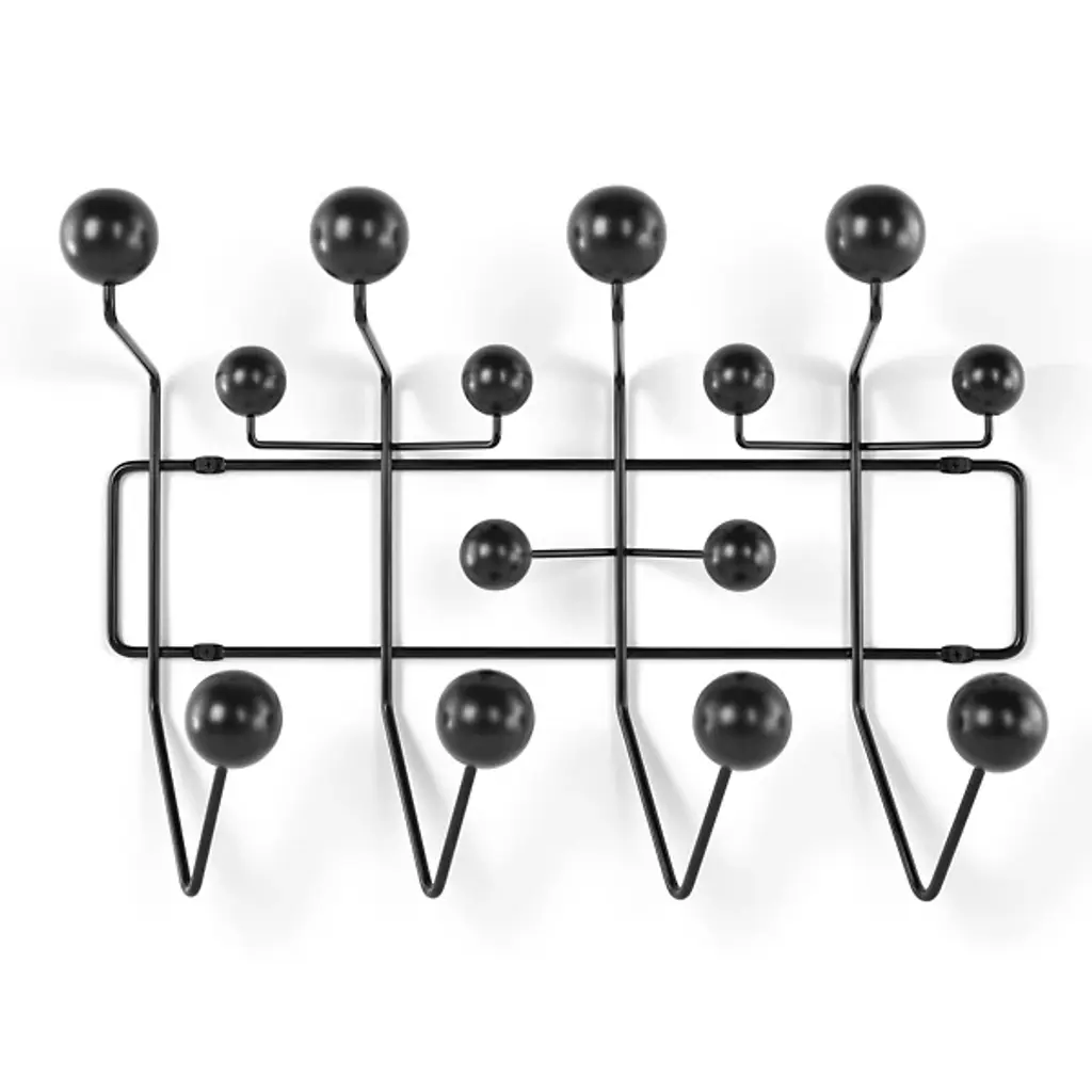 Charles & Ray Eames quite often infused their functional designs with a sense of play. Nowhere is this more evident than in the whimsical geometric form and numerous wooden spheres of the Eames® Hang-It-All Coat Hanger by Herman Miller. This inventive piece is also strong, made of welded steel with drywall anchors for secure mounting.
