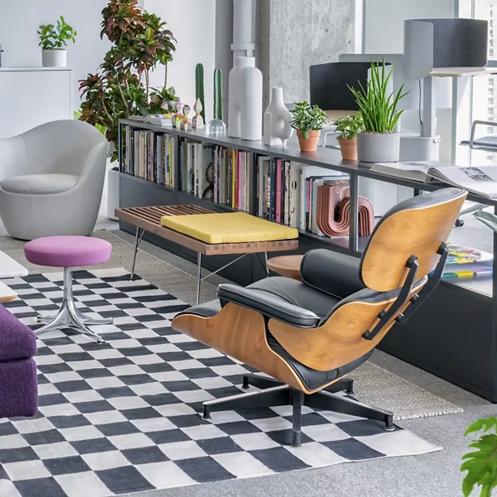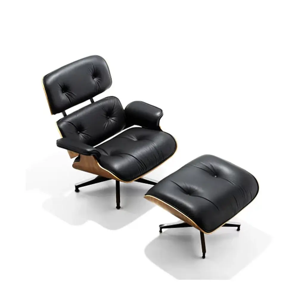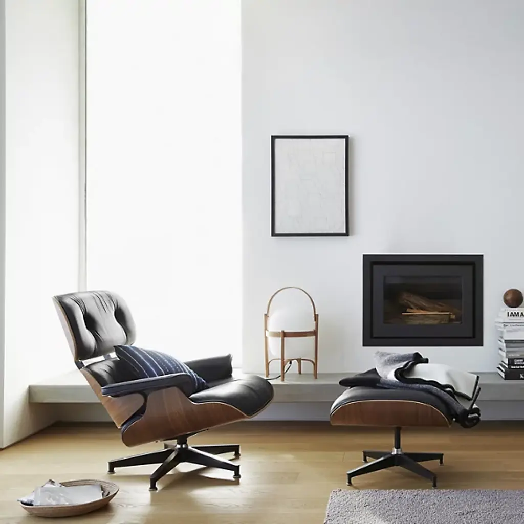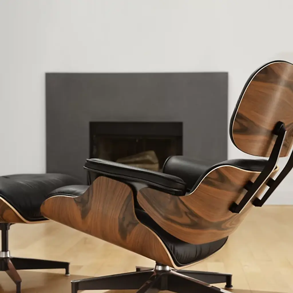 The most recognizable piece of Mid-Century Modern furniture by Herman Miller. The Eames Lounge Chair with Ottoman's modern design was crafted by Charles and Ray Eames and remains one of the most significant and enduring designs of the 20th century. Handcrafted and hand-assembled, Eames features 7-ply veneer shells, cushions which are individually upholstered, and die-cast aluminum back braces and bases. It is available in a variety of plush leather upholstery options and natural or oiled wood veneers, completing its legendary appearance.
