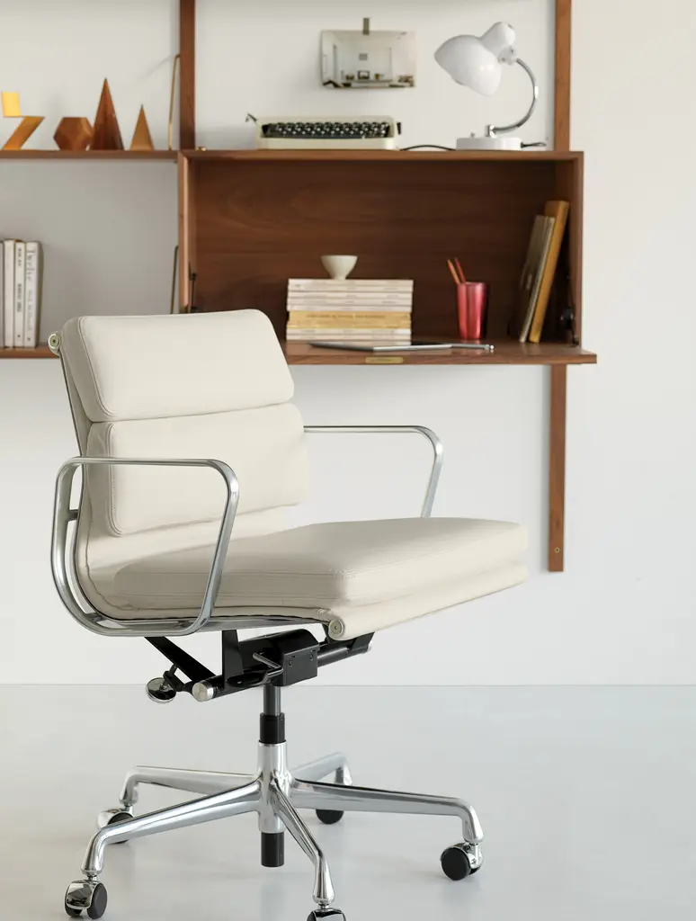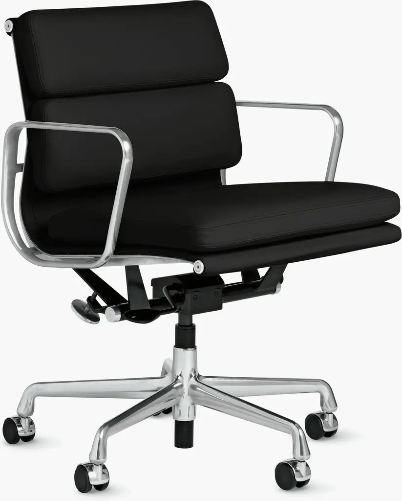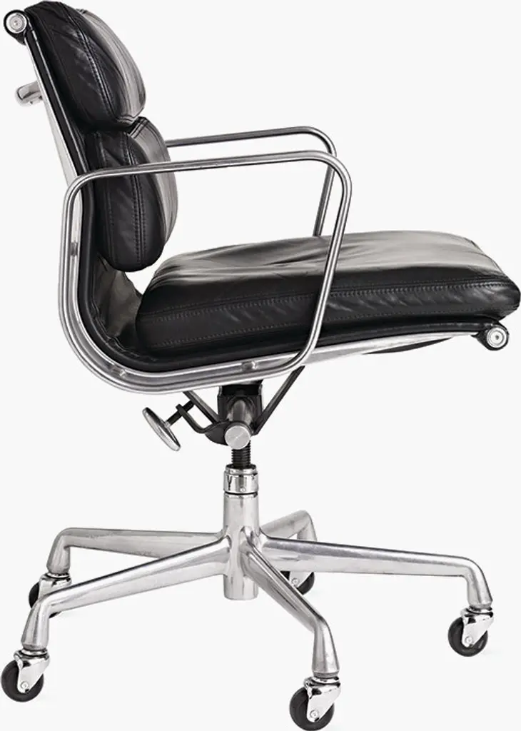 Charles and Ray Eames had ideas about making a better world, one in which things were designed to fulfill the practical needs of ordinary people and bring greater pleasure to our lives. Their Soft Pad Collection (1969) of luxuriously padded chairs evolved from their Aluminum Group Collection. With the addition of plush 2" thick cushions, the Soft Pad Collection retains the style of the earlier one but adds significant comfort. Backed by a 12-year manufacturer's warranty.