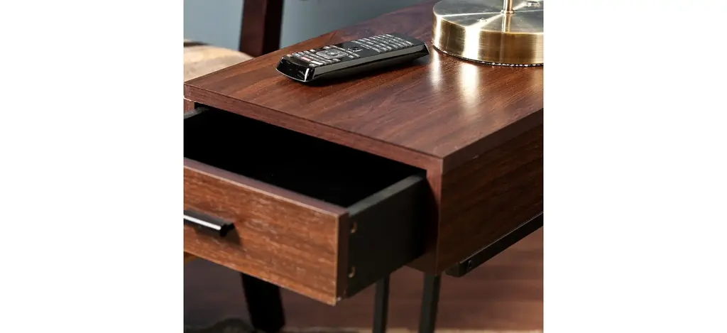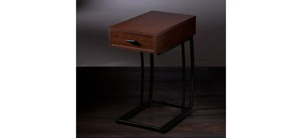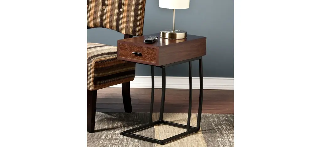 Plug in and power up your electronics with this Earley Side Table W/USB. The walnut table and black metal frame create a clean, contemporary design with modern function. Accessible back charger features one standard and one USB outlet to conveniently charge your phone and laptop, or other devices, at the same time.