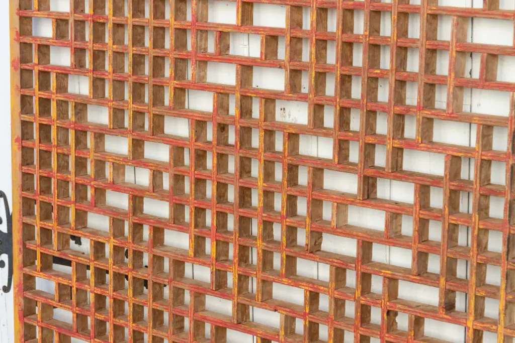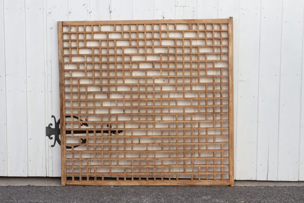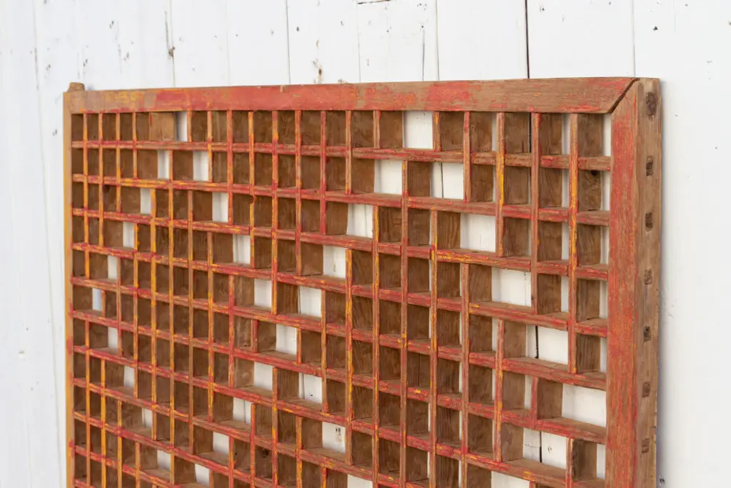A lovely early 20th century architectural piece with all wooden lattice fretwork and a center geometric interweaving designs, this panel was originally used as a swinging gate and has a lovely worn and aged color, it makes an ideal piece as a wall art or headboard.