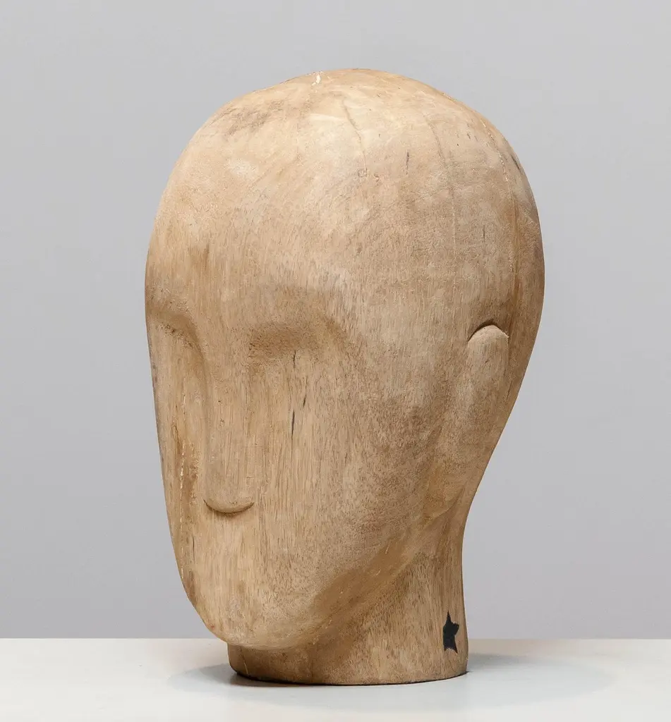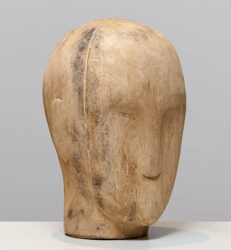 Early 20th Century Scandinavian Faded Wooden Milliners Head, 1900's