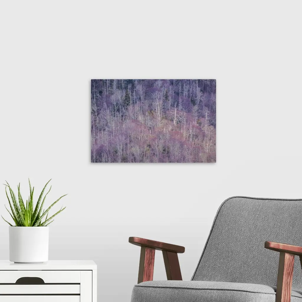 Purple forest in the spring in the Blue Ridge Mountains on the Tennessee side.