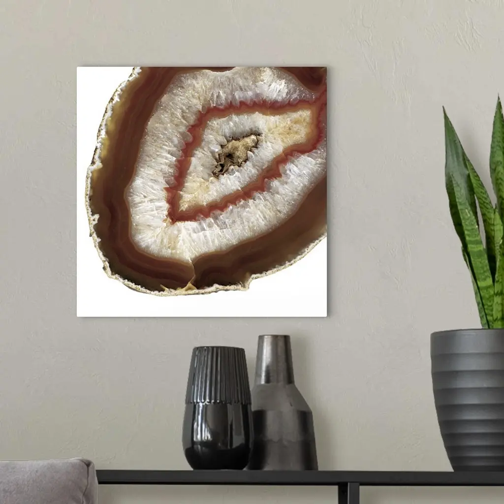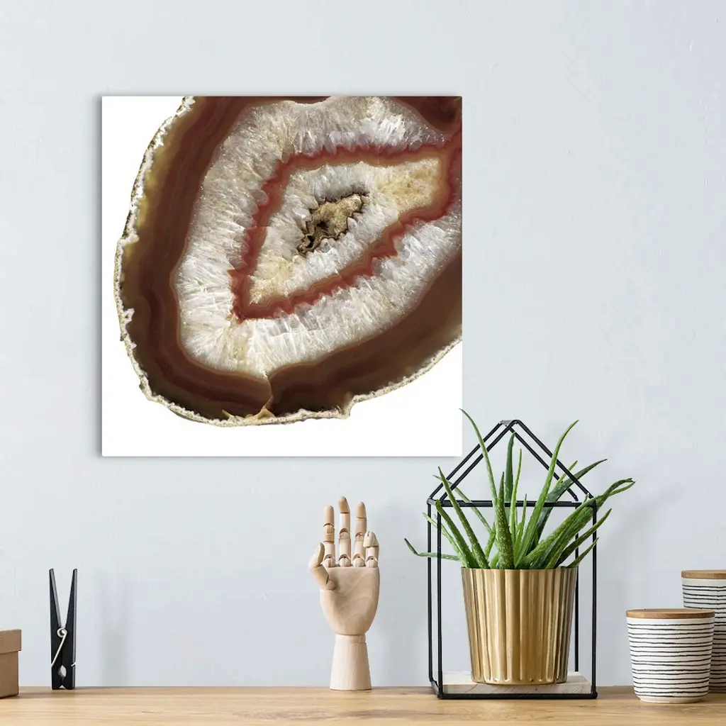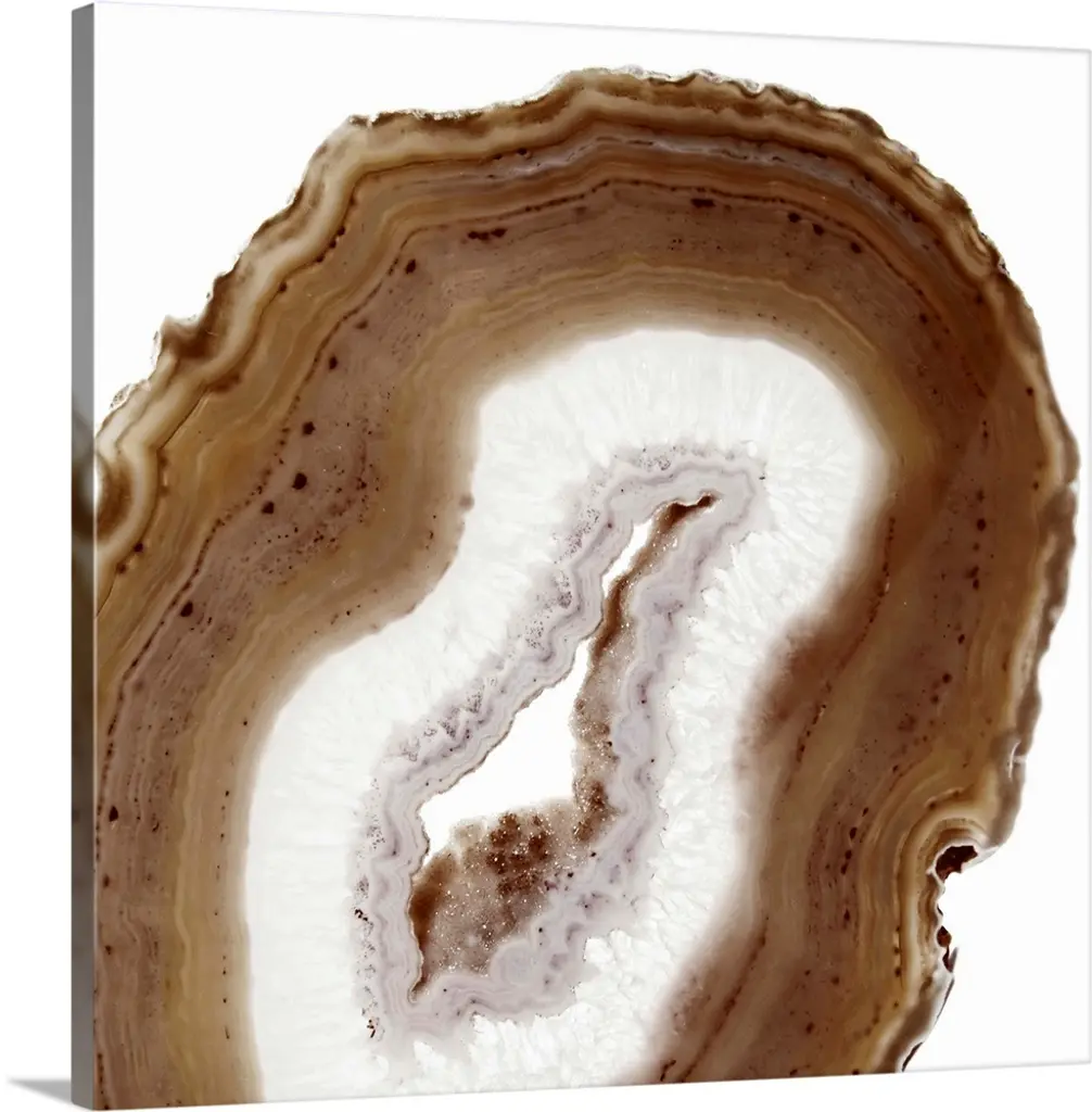 Thin slice of polished agate, showing the natural patterns and colors of the mineral.