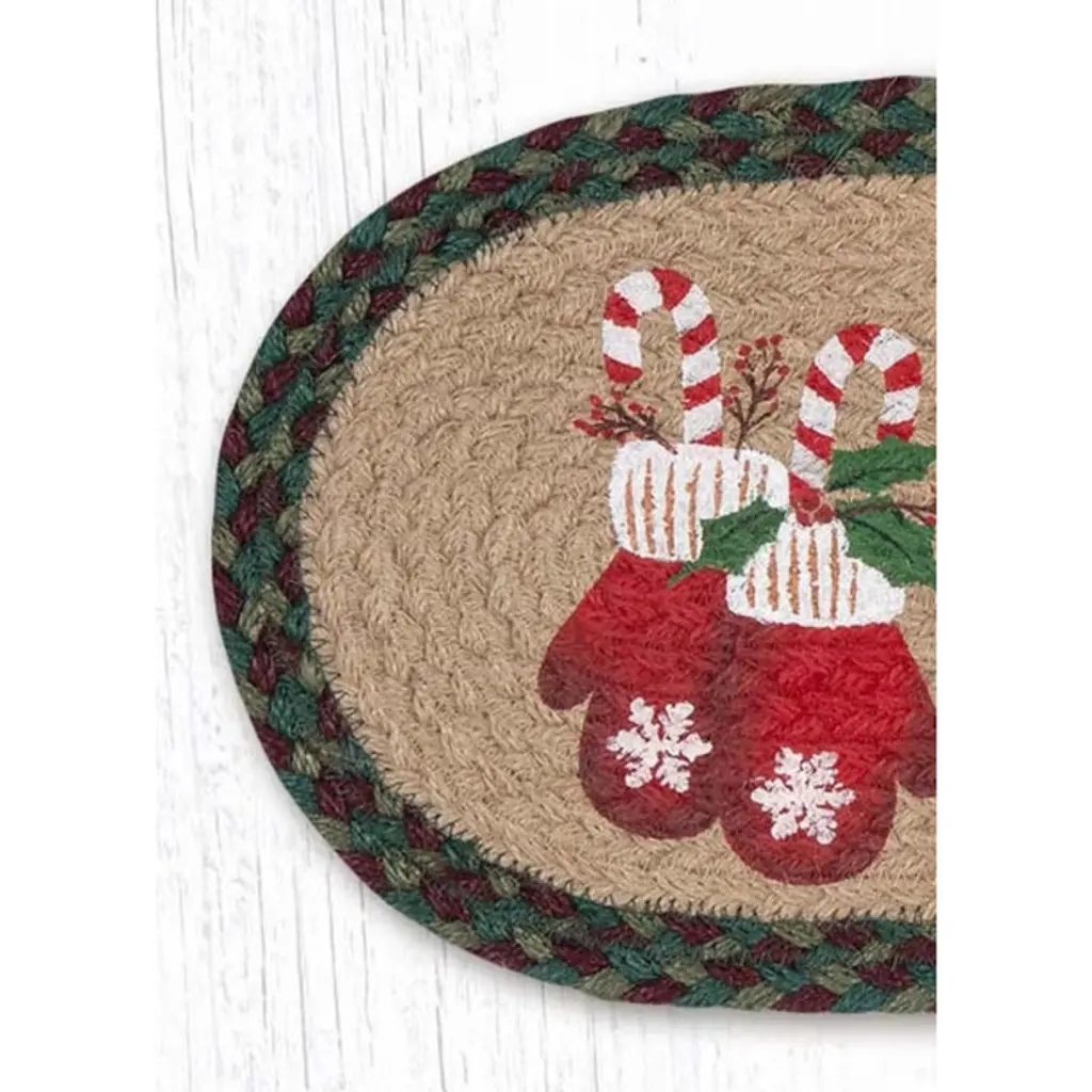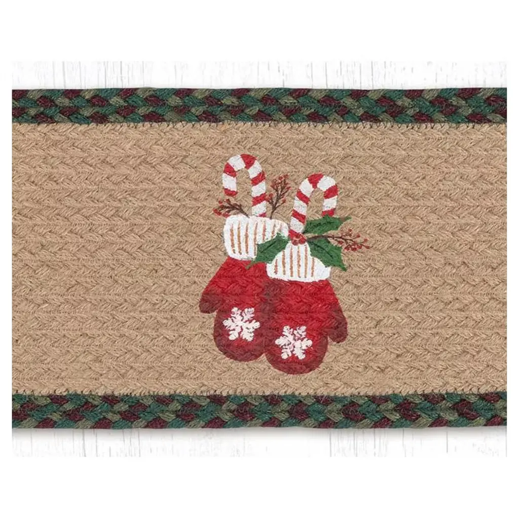 Bring warmth, artistry, and seasonal charm to your home with the Heritage House Mittens Oval Stair Tread, measuring 27 inches by 8.25 inches. Hand-stenciled with delightful mitten motifs by artist Suzanne Pienta, this tread blends rustic craftsmanship with cozy winter appeal. Crafted from durable, natural jute fibers, it offers a textured, non-slip surface that’s both functional and decorative. The oval shape softens stair edges while adding a touch of artisanal beauty. Perfect for winter décor, holiday settings, or year-round charm, it can be displayed flat on steps or creatively used as a table runner accent for festive styling. Seasonal Appeal: Adds a festive, cozy winter vibe to your home décorFunctional & Decorative: Provides a slip-resistant surface while enhancing stair aestheticsArtisanal Touch: Unique hand-stenciled design makes each piece slightly one-of-a-kindVersatile Use: Ideal for stairs, accent décor, or seasonal displays (27" × 8.25")Durable Build: Braided jute offers long-lasting wear and eco-friendly appeal