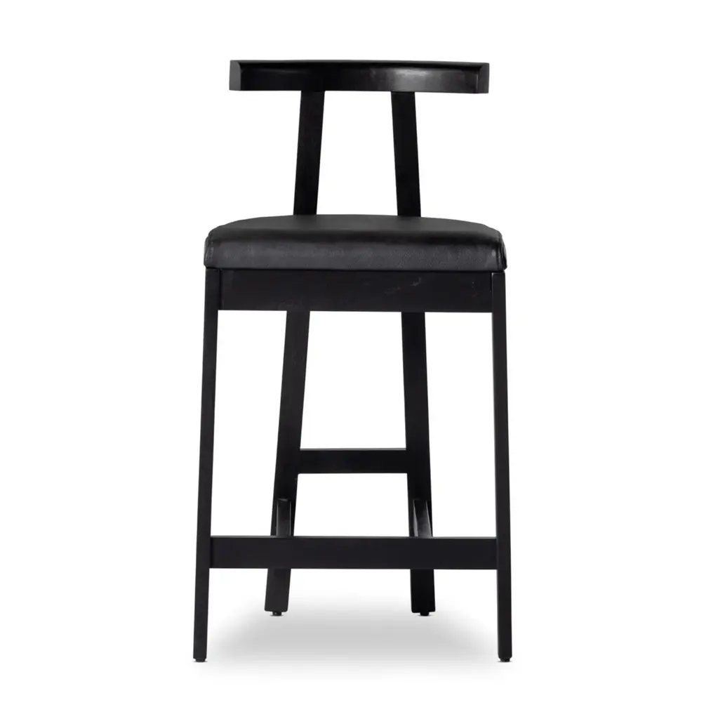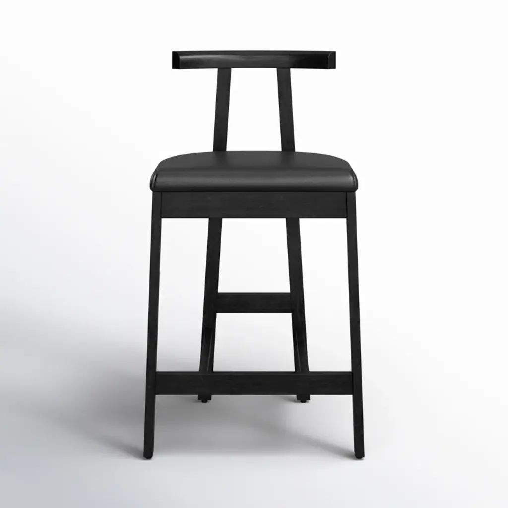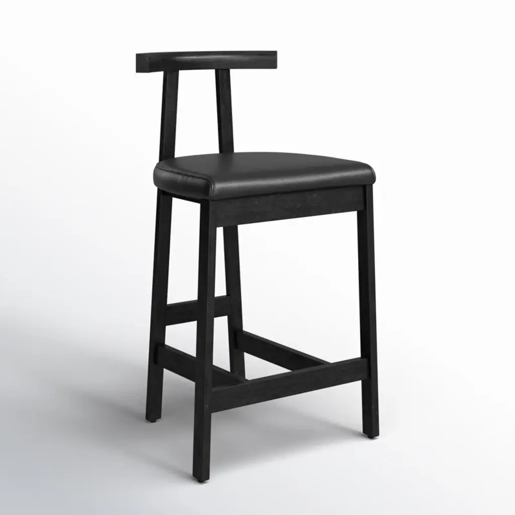 Modern + classic form. Inspired by Grecian-style chairs, this counter stool brings a contemporary touch to your kitchen or home bar. The T-shaped back is elegantly exaggerated, providing both visual appeal and comfort. Crafted from solid wood, the stool features a sleek base and seat color. Upholstered in leather, it adds a sophisticated touch to your space. The four-leg design includes a footrest for added relaxation. With its blend of style and functionality, this counter stool is a perfect addition to your contemporary home.