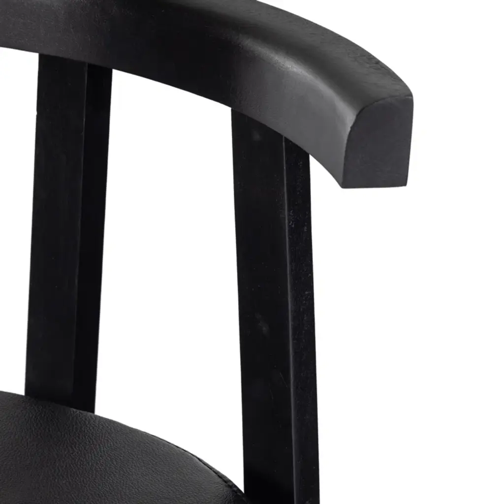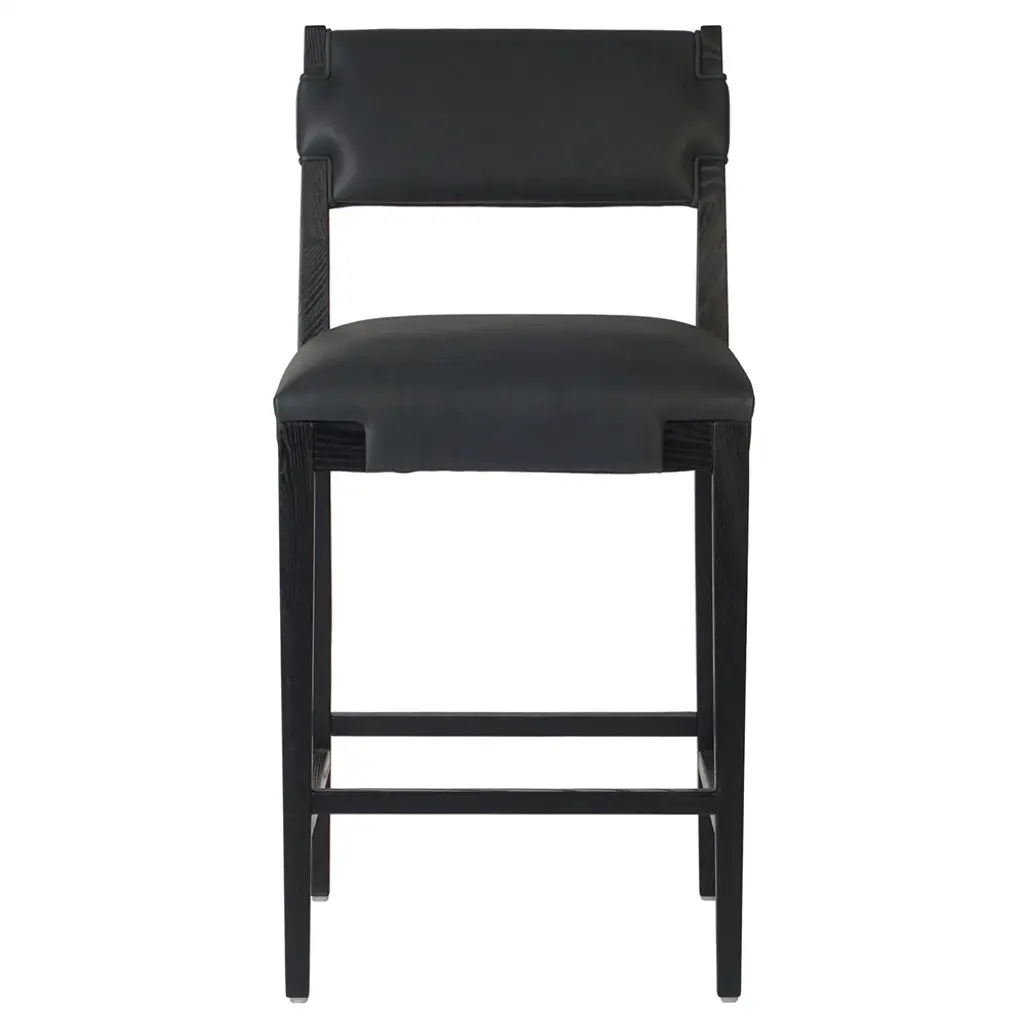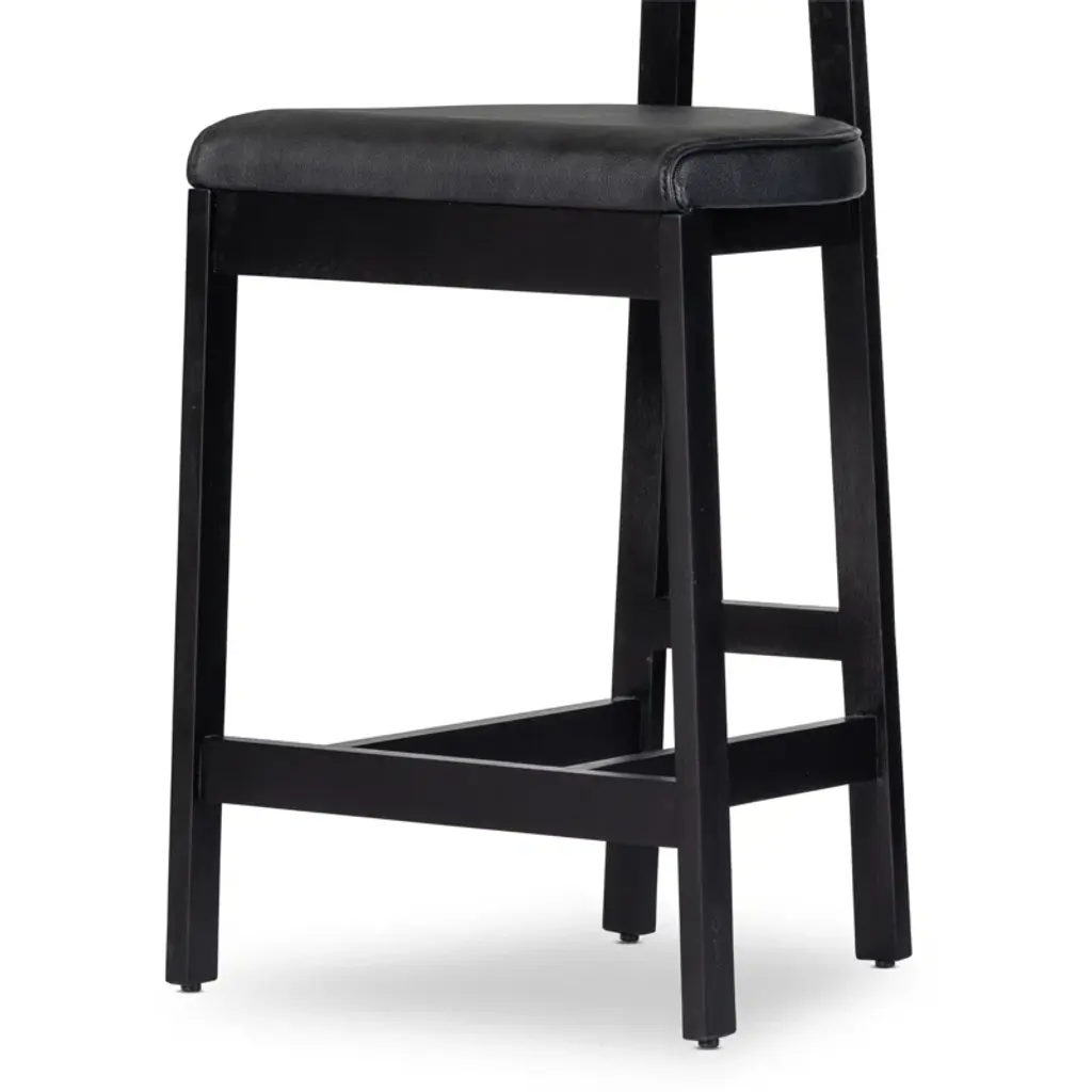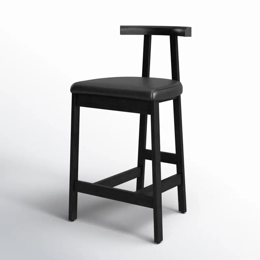 Modern + classic form. Inspired by Grecian-style chairs, this counter stool brings a contemporary touch to your kitchen or home bar. The T-shaped back is elegantly exaggerated, providing both visual appeal and comfort. Crafted from solid wood, the stool features a sleek base and seat color. Upholstered in leather, it adds a sophisticated touch to your space. The four-leg design includes a footrest for added relaxation. With its blend of style and functionality, this counter stool is a perfect addition to your contemporary home.