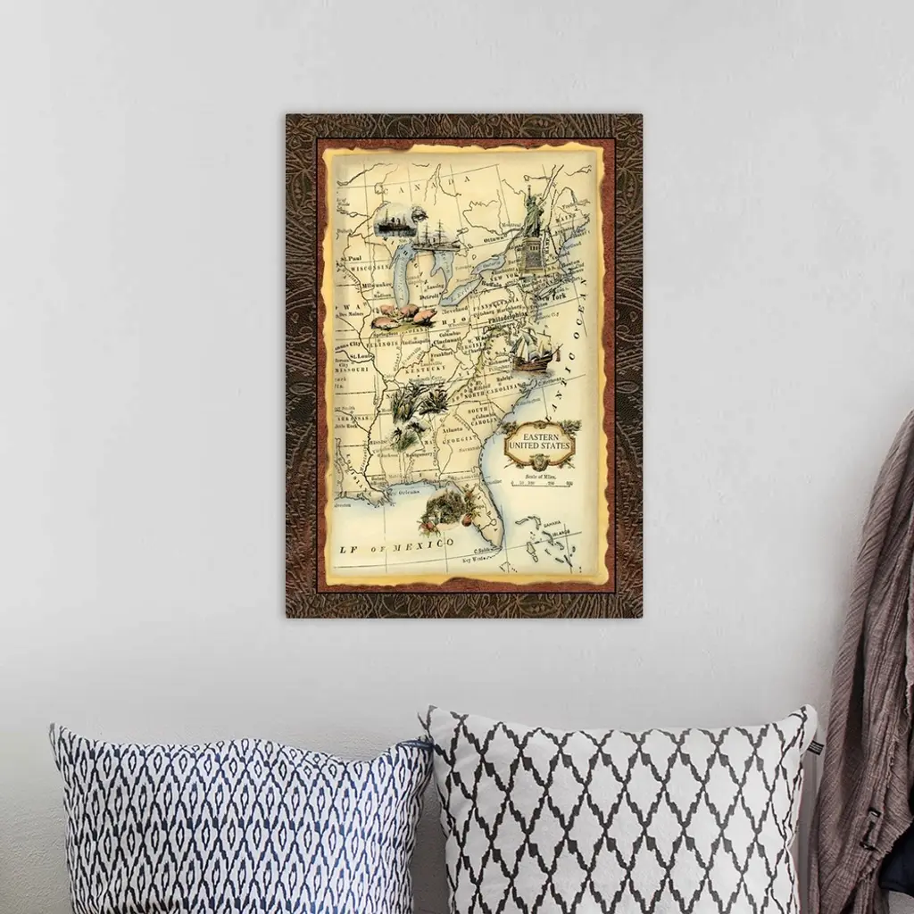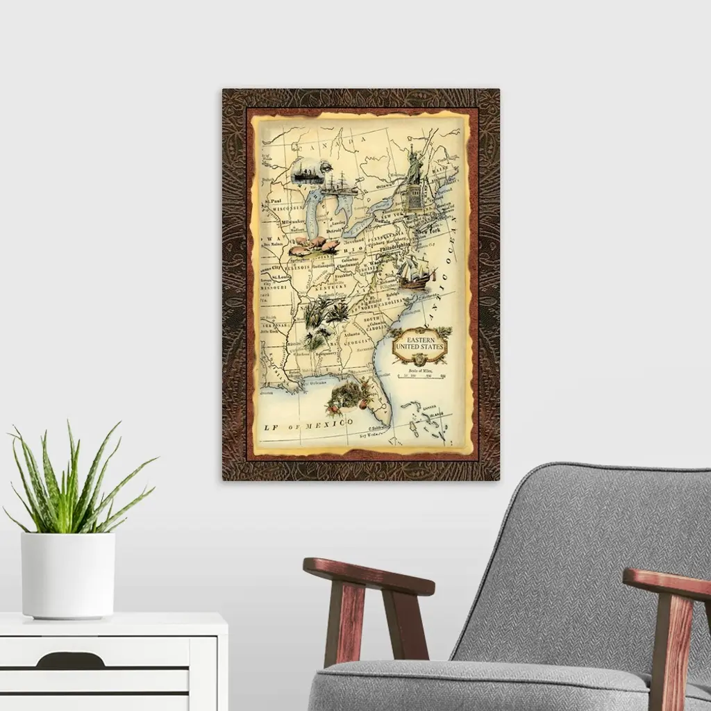 Eastern States Map wall art for home and office decor. Discover canvas art prints, photos, mural, big canvas art and framed wall art in GreatBigCanvas.com's varied collections.