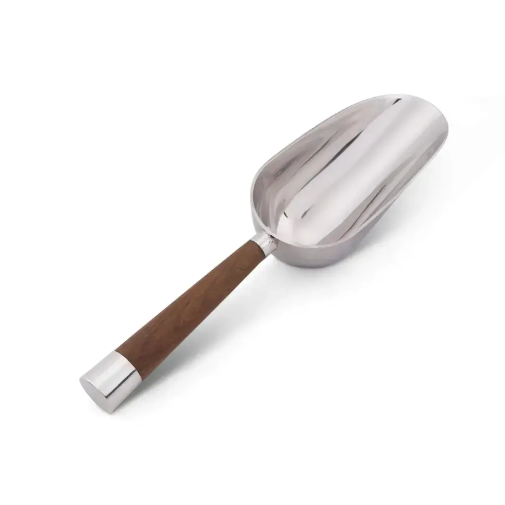 Classic rolled edges and a gleaming mirror finish give this ice scoop a timeless look. Part of our suite of sophisticated stainless steel bar tools, designed exclusively for us by Ana Reza-Hadden.