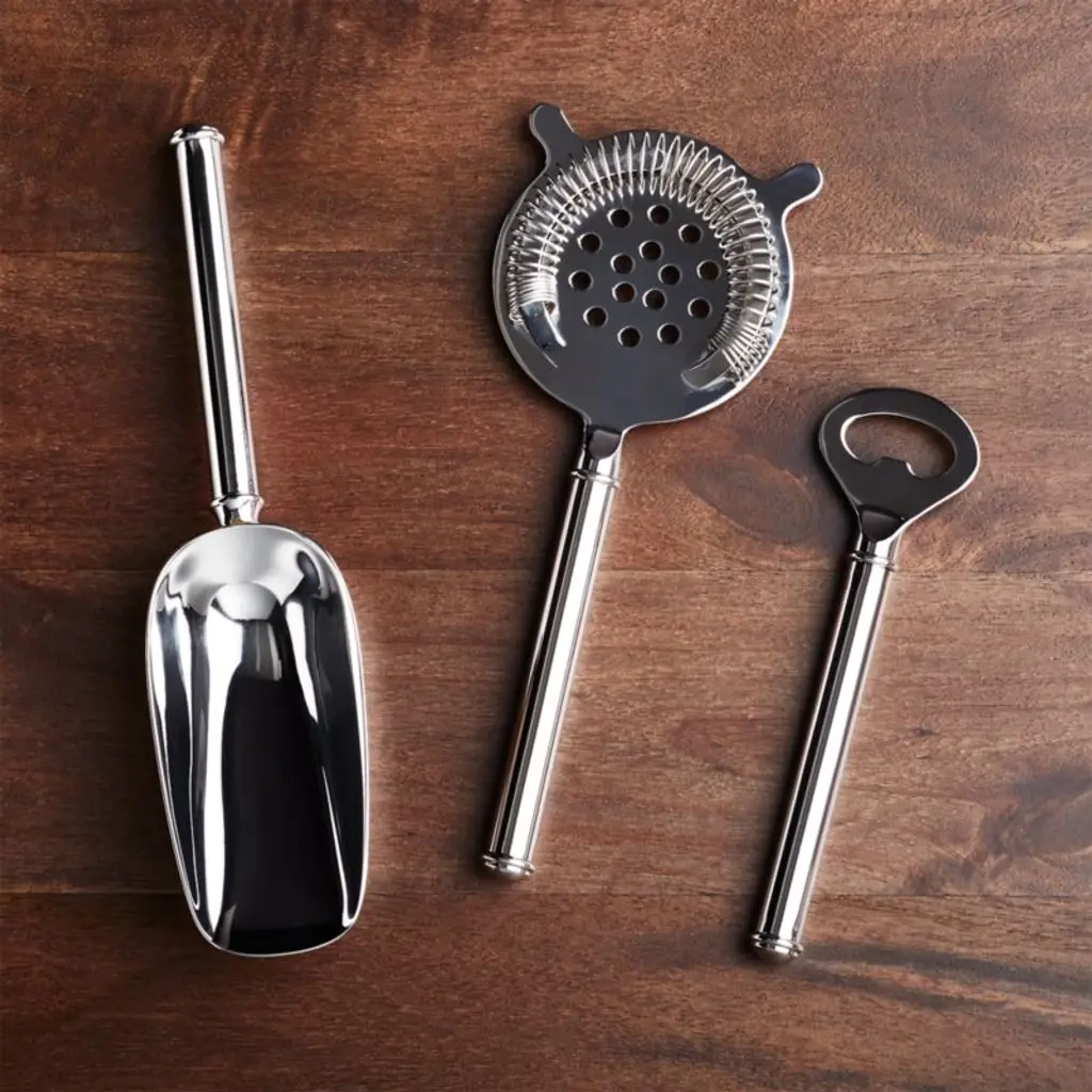 This timeless Hawthorne strainer leaves ice behind as drinks are poured from shaker to glass. Part of our suite of sophisticated stainless steel bar tools, designed exclusively for us by Ana Reza-Hadden, the springed strainer has the collection's classic rolled edges and a gleaming mirror finish.