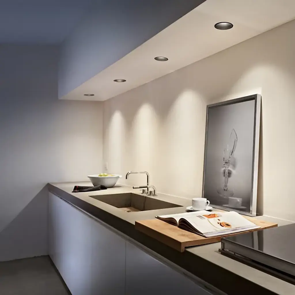 The Easy Kap 80 Round LED Wall-Washer - Airtight from FLOS is an excellent addition to both residential and commercial spaces. This complete lighting kit is made-to-order and crafted in Spain out of die-cast aluminum, and its LED uses cutting-edge technology to increase the power of this downlight. Its cooler operating electronics yield 20 percent higher luminous flux than previous models, and its beam spread and color options make the Easy Kap Round 80 Wall-Washer - Airtight an efficient and versatile product.