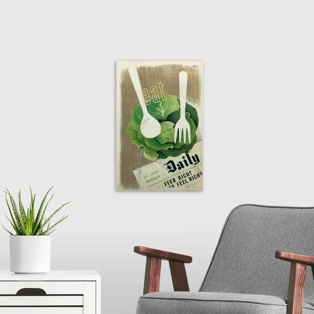 Eat Greens - Vintage Propaganda wall art for home and office decor. Discover canvas art prints, photos, mural, big canvas art and framed wall art in GreatBigCanvas.com's varied collections.