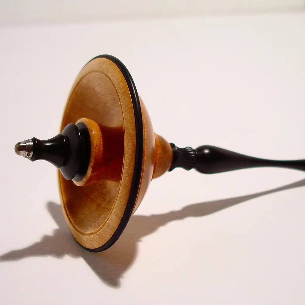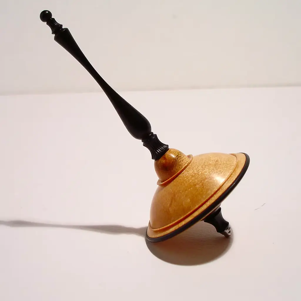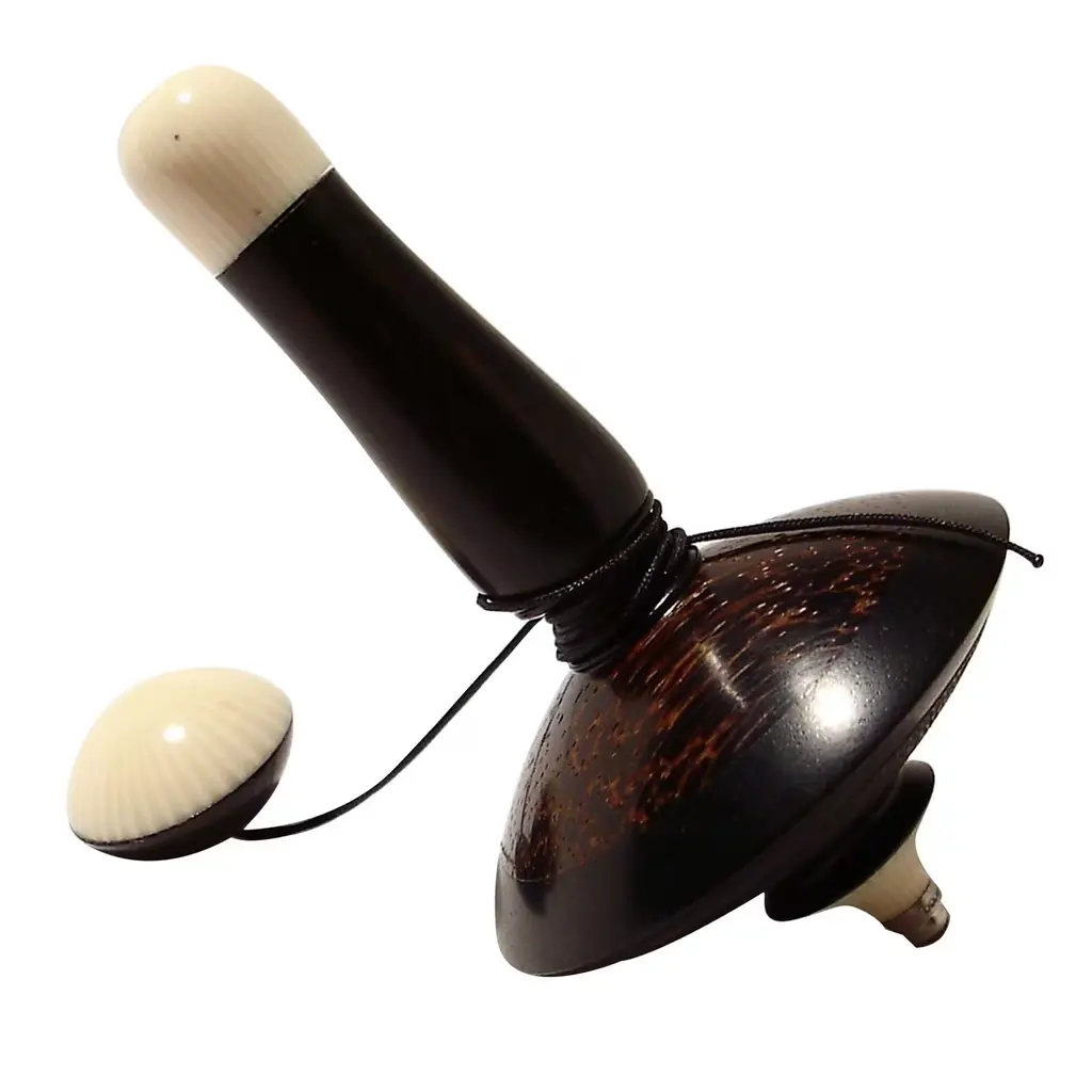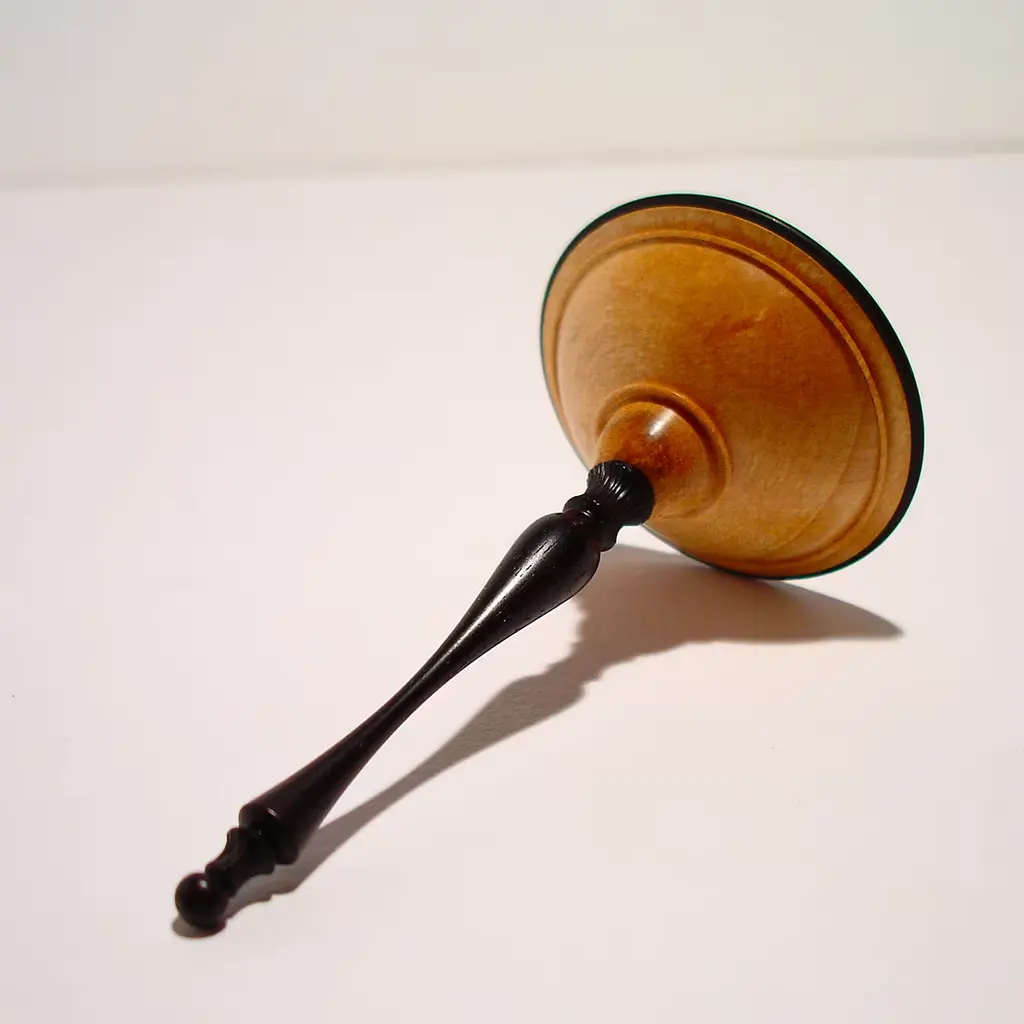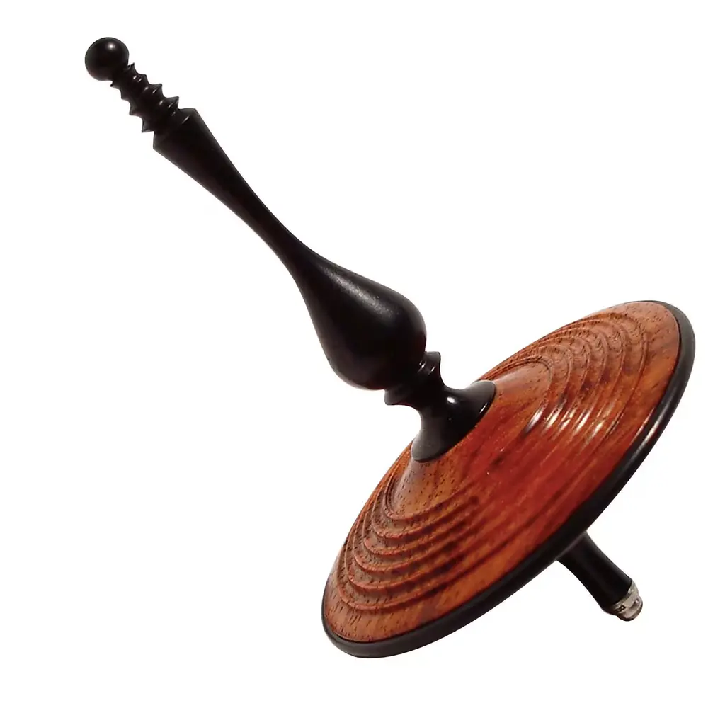 This exquisite spinning top is a unique example of an iconic toy infused with modern style. Crafted entirely by hand of Cameroon ebony and Canadian maple, the warm and distinctive wood grains create a strong contrast that enhances the classic design. The raw parts that compose it are first assembled and then shaped on a lathe using traditional methods and finished with high-quality natural oil and wax to enhance and protect the prized woods. A steel point with the "mauby&wood" logo completes this one-of-a-kind collectible item.