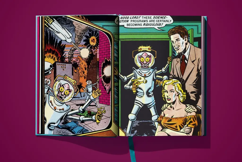 The definitive collection of EC’s seminal science fiction magazine.When Bill Gaines inherited EC Comics from his father, the legendary publisher M. C. Gaines, at just 25 years old, no one could predict the impact he would have—not only on comics, but on global pop culture at large.Inspired by the pulp sci-fi stories and weird fiction of their youth, Bill Gaines and artist Al Feldstein drafted the initial issues of what would become the first true serialized science fiction magazine, delivering stories, creatures, and worlds unlike anything readers had ever seen.Far from the simplistic space adventures of Flash Gordon and Buck Rogers, the high-concept, morally ambiguous, and often-chilling tales of Weird Science resonated deeply with readers growing up in the Atomic Age under the shadow of the mushroom cloud. Nuclear threats, the ravages of science unshackled from ethics, and the creeping authority of world governments locked in a Cold War had begun seeping into the fabric of American life.The first issue of Weird Science appeared on newsstands in the spring of 1950, its cover boldly daring readers to pick it up. Subsequent bimonthly releases pulled audiences into an ever-changing kaleidoscope of “Scientific SuspenStories,” featuring Martian invasions, murderous androids, time travel gone awry, planets inhabited entirely by women, and more.Bolstered by a growing stable of soon-to-be comic art legends like Harvey Kurtzman, Wally Wood, and Joe Orlando, Weird Science shaped the collective imagination of a generation. Gaines and Feldstein boldly tackled themes that were rarely addressed in serialized comics, while visionary artists like Wood went on to define the aesthetic and societal impact of the genre, depicting futuristic vistas and impossible technology with a level of detail as if not merely imagining them, but glimpsing into the very future itself.In Volume 1, TASCHEN presents the first eleven issues of Weird Science, meticulously recreating the comics in their original glory. Rather than recolor the artwork, this edition works with super-high-resolution photographs of each page as it was printed more than half a century ago, using modern retouching techniques to correct problems with the era’s inexpensive, imperfect printing. The result is a pristine product, keeping the character and feel of the classic pulp comic magazines, but freshly printed by a world-class press, produced without the economic or time constraints of the past.Complete with an introductory essay by EC authority Grant Geissman, which illustrates the historical, cultural, and artistic context of the stories and their creators, this collection is a must-have for fans of the weird, the strange, and the fantastical.Collector’s Edition of 1,000 numbered copies. Aluminum print cover tipped into a leatherette-bound spine, foil embossing, and housed in a slipcase.