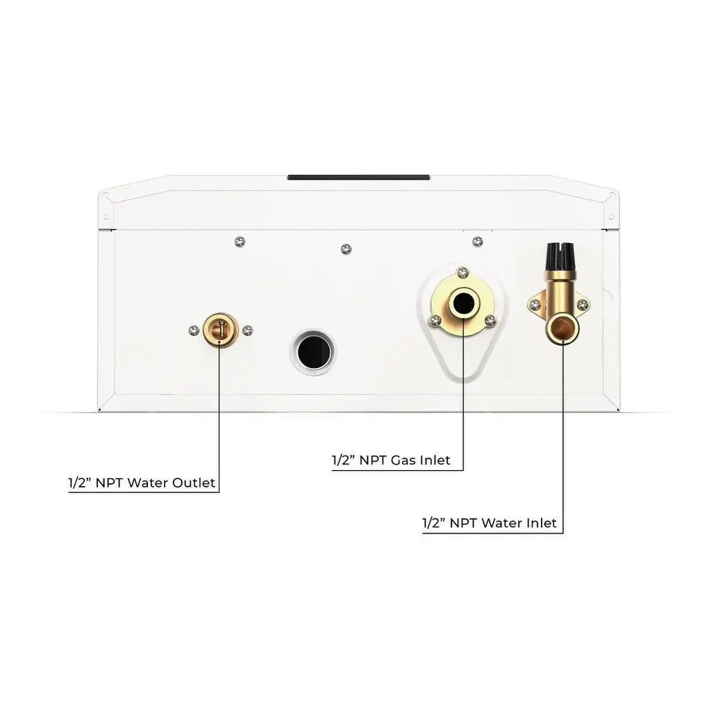 Heating water smarter with the Eccotemp Smart Home Indoor 4.0 GPM Natural Gas Tankless Water Heater (SH12-A-NG). Leveraging the latest in technological innovation, this water heater not only ensures an uninterrupted flow of hot water but also optimizes your space and energy usage for a smarter, more efficient home. Say goodbye to running out of hot water during peak usage times or adjusting water temperature manually. This Smart Home Tankless Water Heater is equipped with Wi-Fi connectivity, allowing you to control and monitor your water heater remotely using your smartphone or pair with Amazon Alexa and Google Home to access voice commands. Set customized schedules, adjust temperature settings, view real consumption statistics, and receive maintenance alerts with ease, giving you full control over your hot water supply from anywhere, anytime. Featuring a powerful flow rate of 4.0 gallons per minute (GPM), this tankless water heater is perfect for small to medium-sized households, providing a continuous and uninterrupted supply of hot water for all your needs. Enjoy long showers, efficient dishwashing, and other hot water demands without any interruptions, making your daily routines more convenient and enjoyable. This Tankless Water Heater is not just smart, but also energy efficient. Its advanced heating technology only heats water as it's needed, eliminating the standby heat loss that occurs with traditional tank-based water heaters. This results in significant energy savings, reducing your utility bills and lowering your environmental footprint.Features: