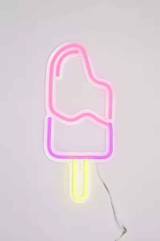 This fun popsicle light is perfect for ice cream shops, playrooms, boba shops, or any cozy nook where you enjoy your favorite treats. With its playful colors, it adds a unique touch that’s sure to catch the eye. **Features** \- Multi-color neon design \- Perfect for home and commercial spaces \- Easy to hang and made for indoor use **Content + Care** \- Acrylic, LED \- Wipe clean \- Imported \- Made in compliance with US electrical standards. To use this item outside of the US, pair with an outlet adapter and voltage converter made specifically for use in your location. **Size** \- Wattage/Voltage: 18W/12V \- Dimensions: 11.5"l x 0.85"w x 15.8"h \- Cord length: 9 ft, switch is 3 ft from plug \- Weight: 1lbs