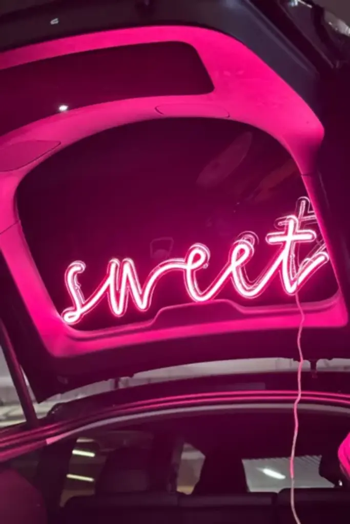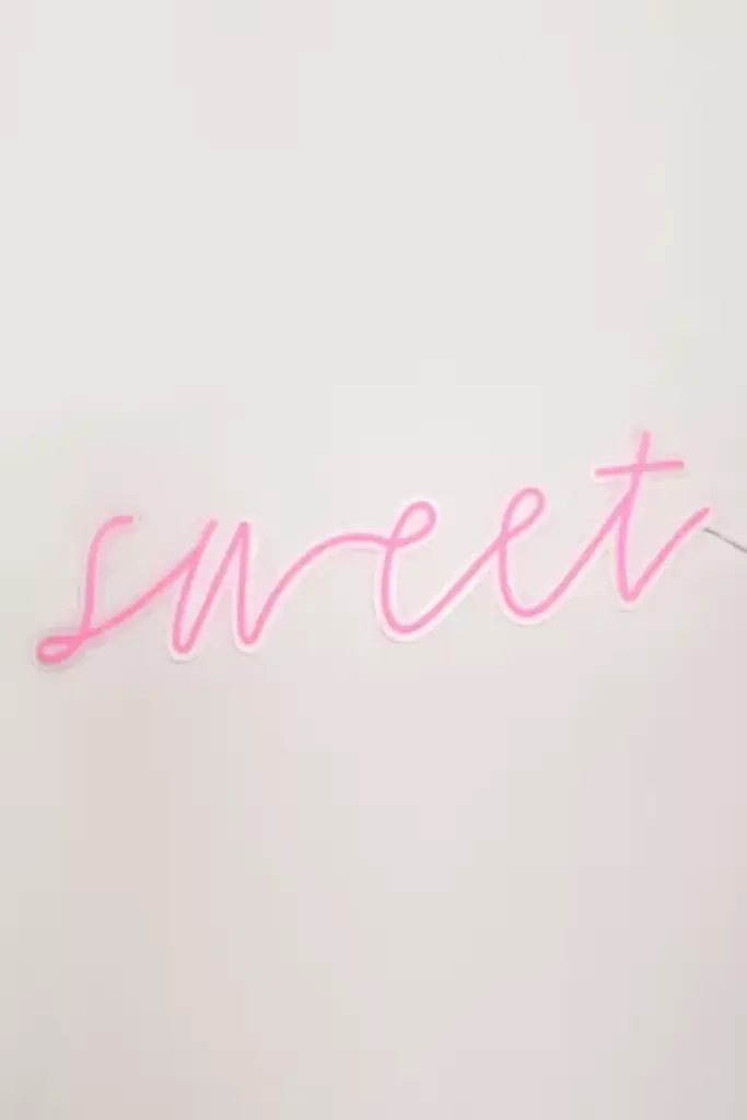 Add a pop of sweetness to your space with this pink neon sign that says "Sweet"! Whether you want to gift it with a personal touch or keep it for yourself, this sign sweetens up any room! **Features** \- Pink "Sweet" LED neon sign \- Handmade from eco-friendly materials \- Ideal for home decor or commercial settings **Content + Care** \- Acrylic, LED \- Wipe clean \- Imported \- Made in compliance with US electrical standards. To use this item outside of the US, pair with an outlet adapter and voltage converter made specifically for use in your location. **Size** \- Wattage/Voltage: 34W/12V \- Dimensions: 34.2"l x 0.85"w x 9.5"h \- Cord length: 9 ft, switch is 3 ft from plug \- Weight: 2.3lbs