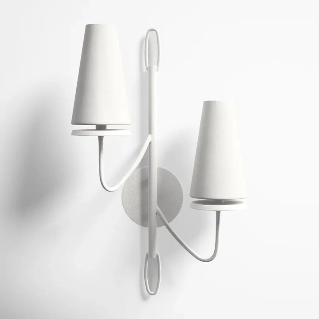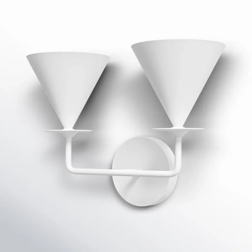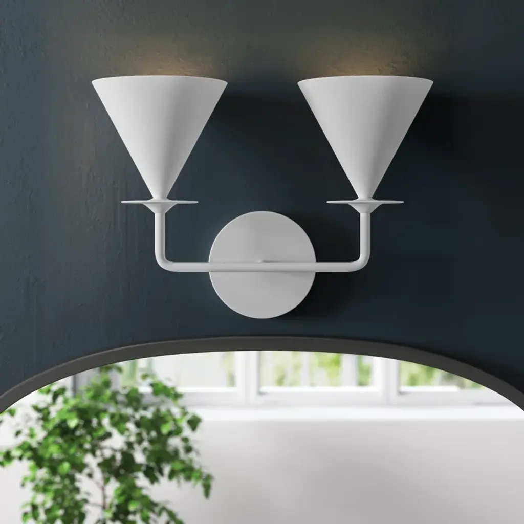 Simply cool and effortlessly casual, our 2-light vanity fixture provides abundant illumination for your bathroom or powder room. Designed by Christiane Lemieux, it's crafted from steel and encased in white-toned cast plaster. Featuring two inverted cone shades attached to a horizontal bar, this luminary reflects mid-century Italian and Art Deco influences. Two bulbs are sold separately, and they're compatible with dimmer switches. And it's damp-rated, so it's safe to install and use in high-moisture environments.