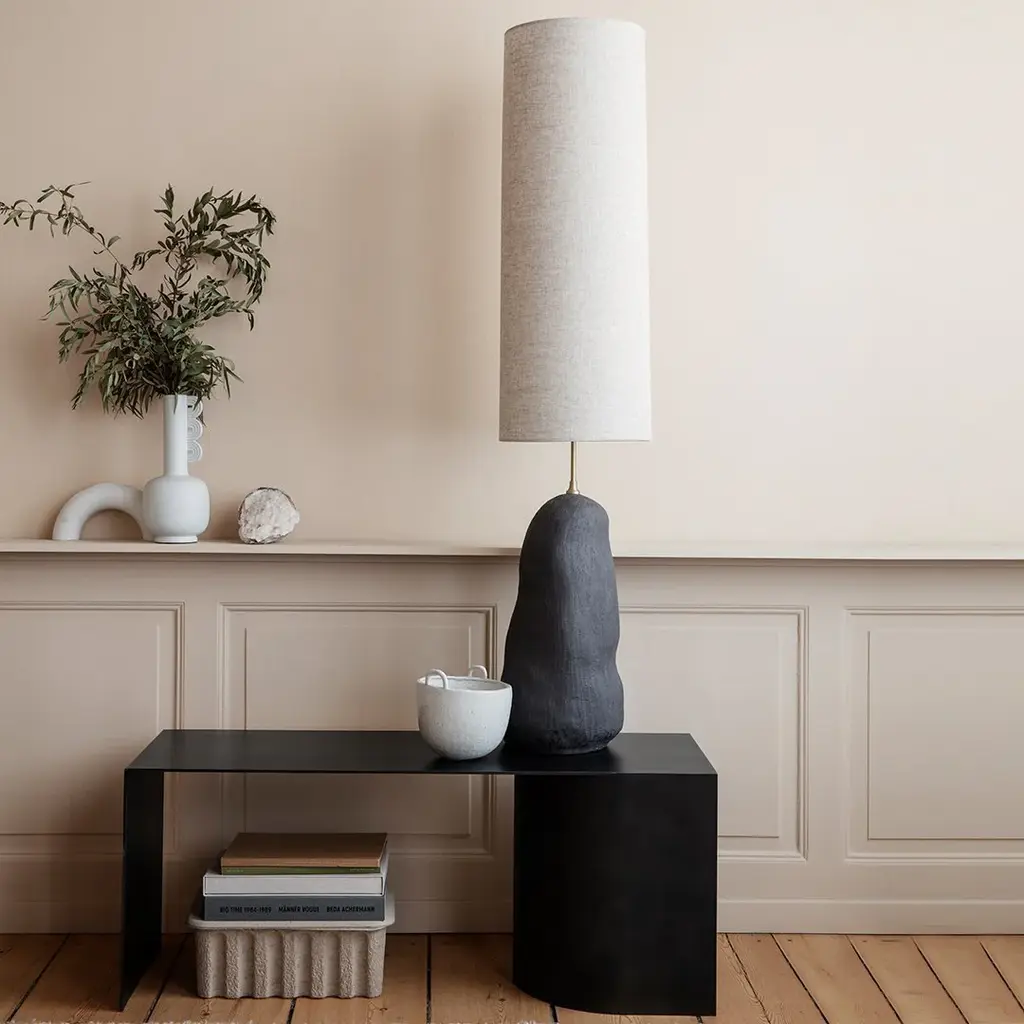 Alter the expression of your Hebe lamp entirely by combining the base with a small, medium, or tall textile lampshade in either off-white or a shade of burnt curry. The classically styled shade adds an elegant feel to the modern base, and together, the two certainly make a grand statement.
