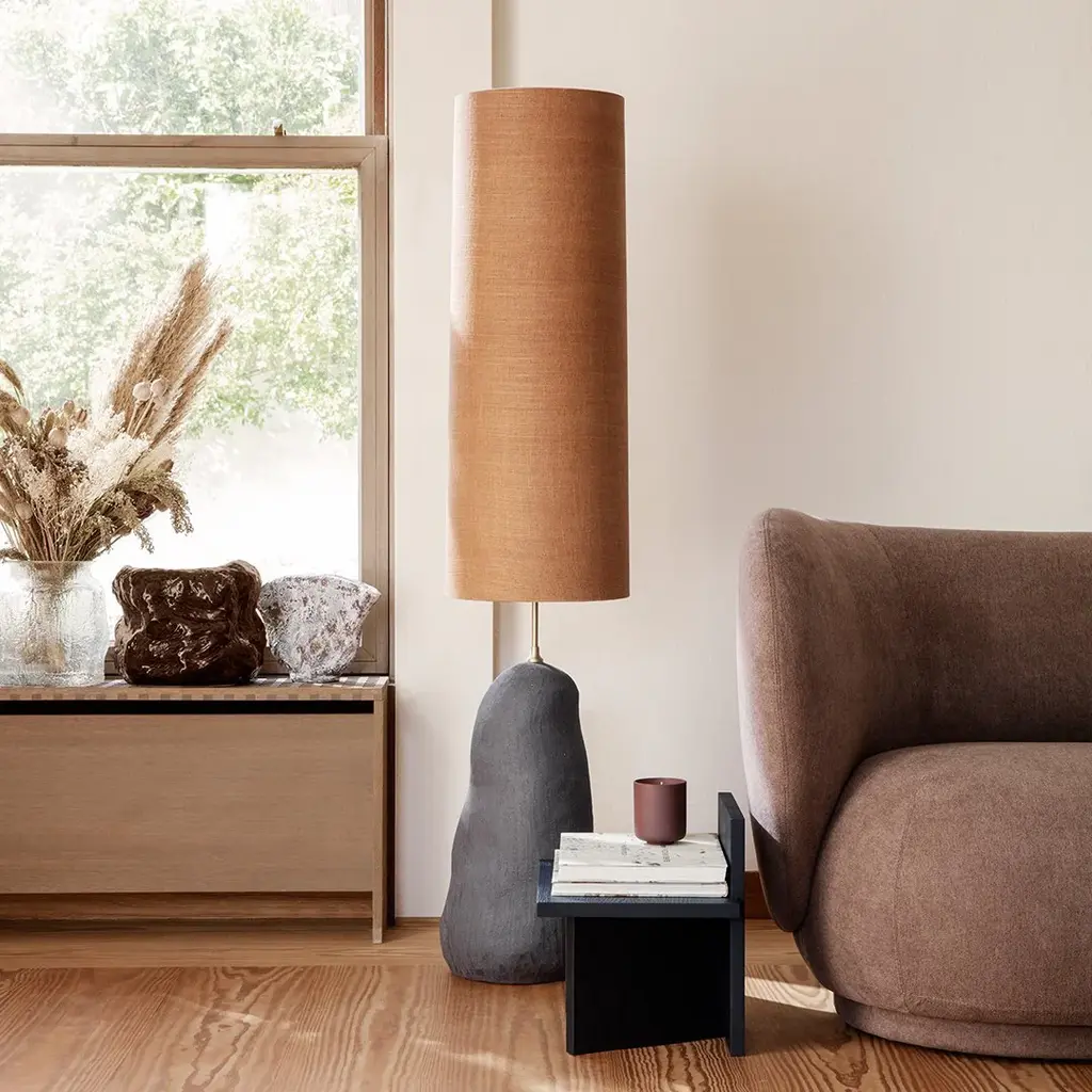 Alter the expression of your Hebe lamp entirely by combining the base with a small, medium, or tall textile lampshade in either off-white or a shade of burnt curry. The classically styled shade adds an elegant feel to the modern base, and together, the two certainly make a grand statement.