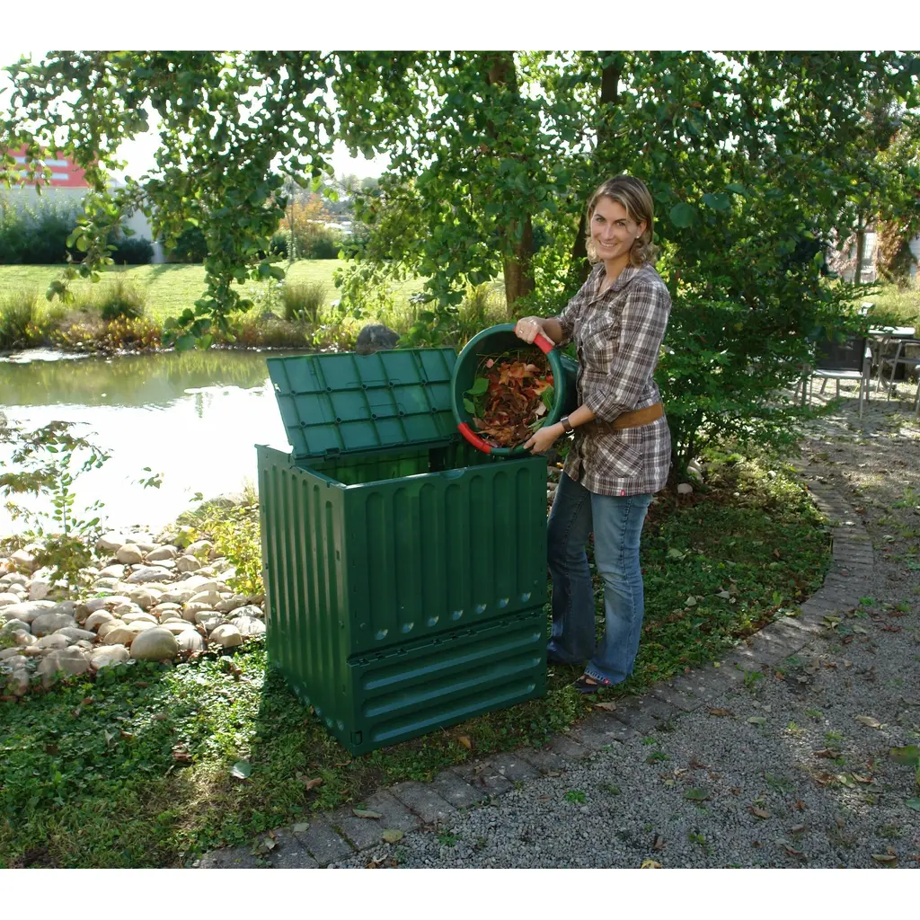 ECO-King 600 liters/160 gallon capacity green household composter. Ideal for a mid-sized household. Utilize lawn cuttings, leaves and kitchen scraps to create nutrient rich compost to enhance garden health and promote healthy plants and vegetables. Excellent for container gardening, vegetable gardens and general soil amendment.