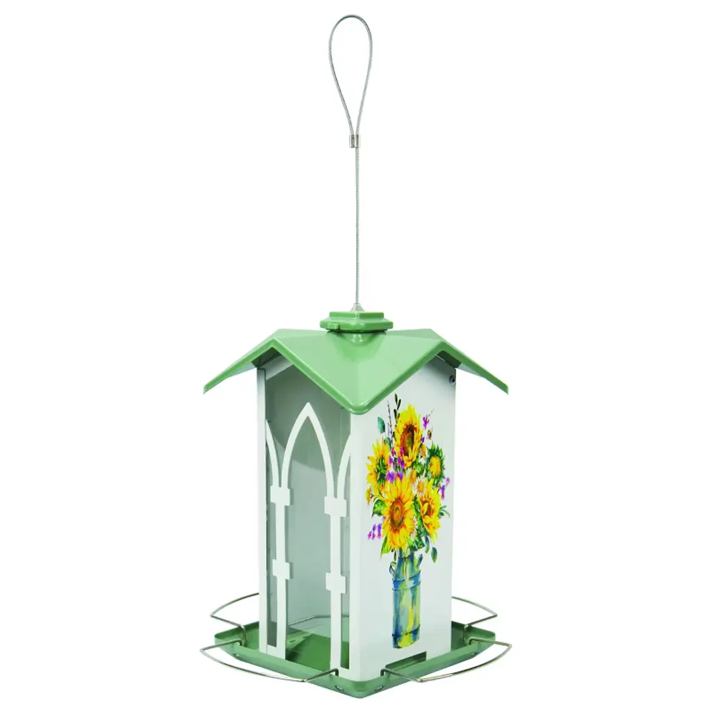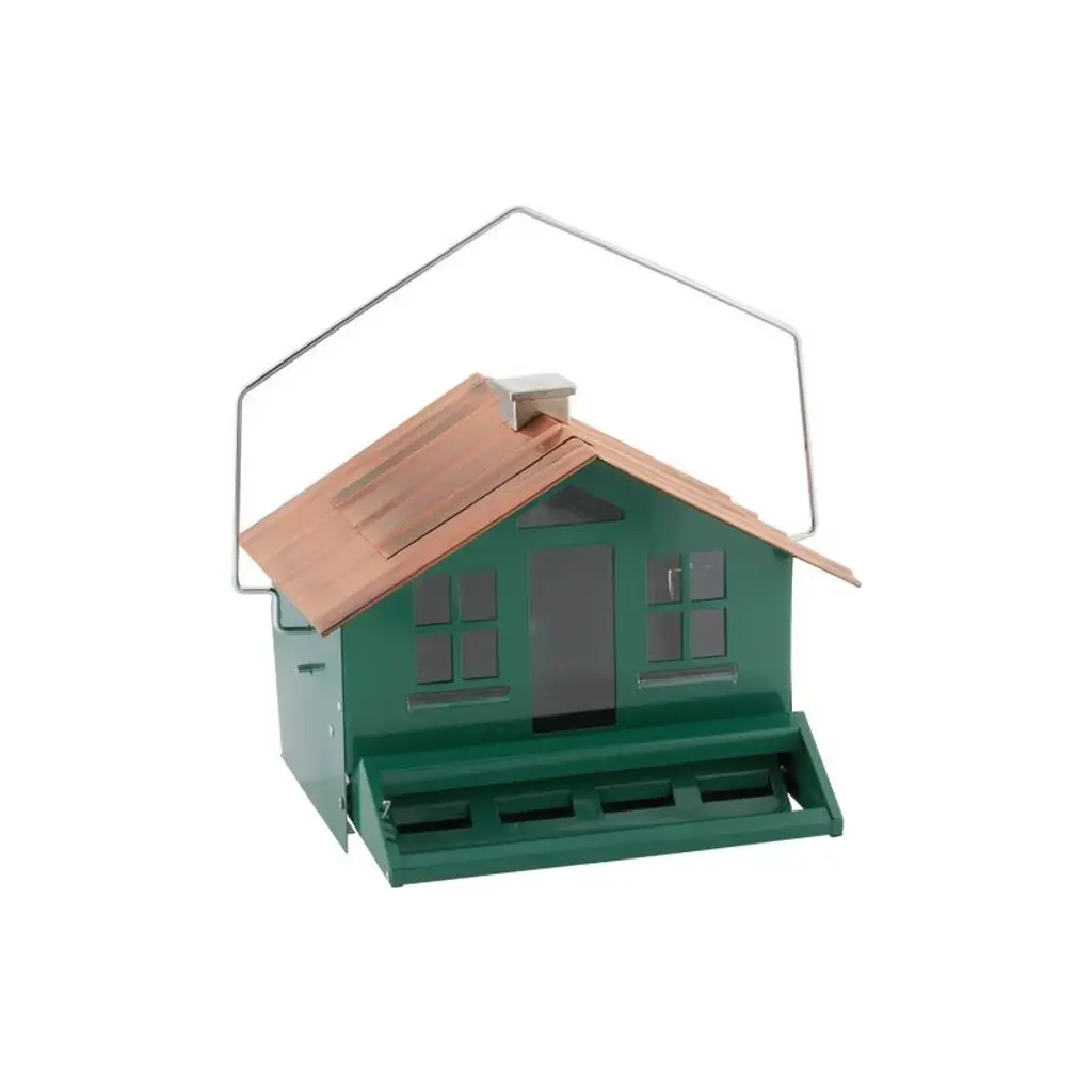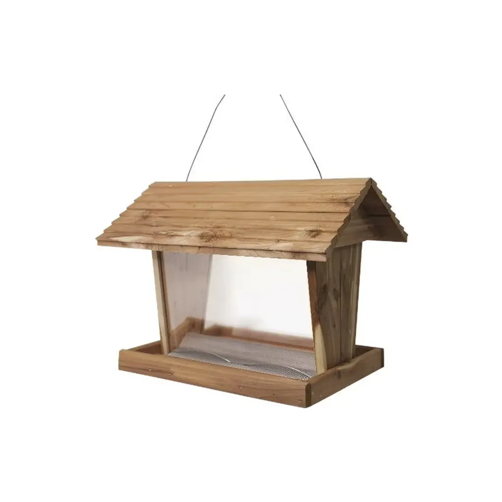 Made with recycled materials, this EcoCycle bird feeder is a sustainable birding choice. The Bird Banquet hopper bird feeder attracts birds big and small and is made to last with insect and rot resistant recycled plastic and rust-free hardware. Easily fill with a wide range of seed to attract a variety of beautiful birds like cardinals, woodpeckers, nuthatches, finches, and more to your backyard. This feeder features a rust-free removable fresh seed tray that lifts out easily for frequent and thorough cleanings. The perforated seed tray base aids in water drainage and promotes air circulation to keep seed fresh longer. A protective roof and stay-clear crack resistant windows help to shield the feeder contents from rain and debris, keeping feed fresh longer. With end-of-life recyclability, enjoy watching the birds feed while being eco-conscious.