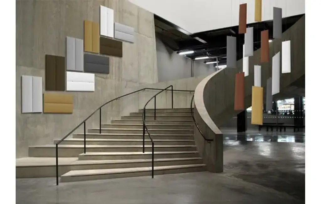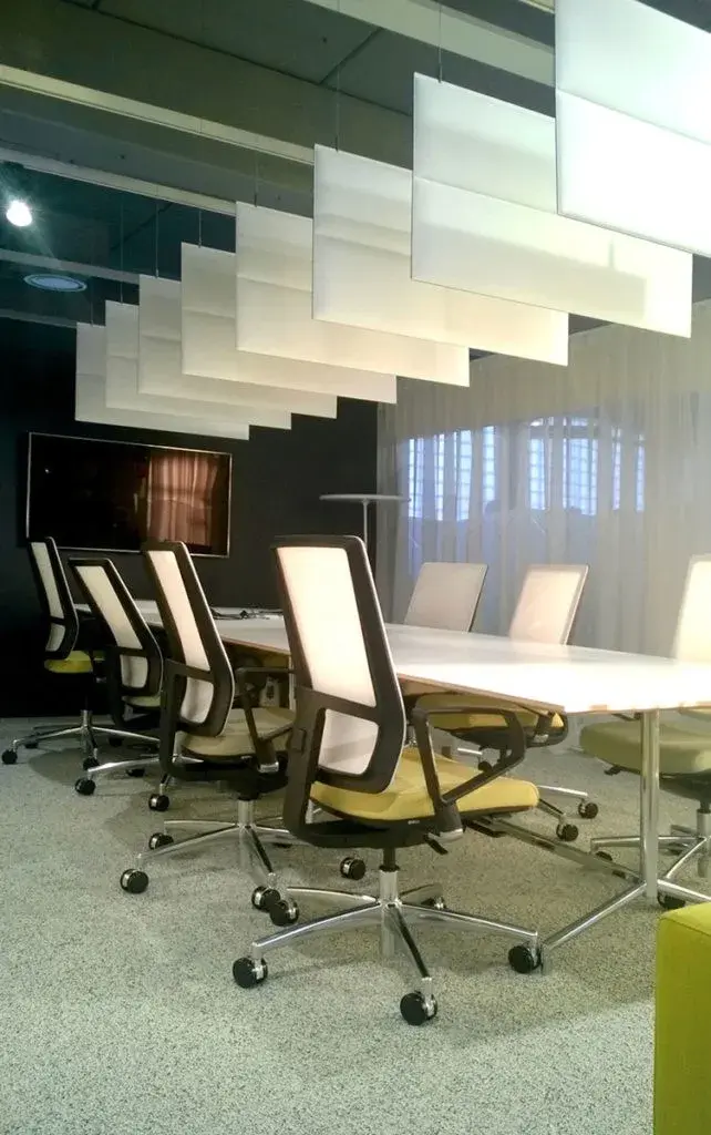 ECOstrong BAFFLE is a polyester fibre acoustic bafflesECOstrong is a sound absorbing thermoformed panel, but not only. In fact, this product allows for punctual deliveries but also for creating systems.With the same panel, wall and ceiling corrective actions can be implemented, thanks to the distribution of panels applied with suction cups, magnets or cables, or created self-supporting self-supporting, practical and colorful totems.But in case of openspace? ECOstrong becomes an element of a modular system that allows you to create workstations and separators that are 3D-looking, pleasing to the eye and highly performing. ECOstrong, like all ECOline panels, is extremely lightweight and suitable for any type of environment where acoustic comfort is desired.ECOstrong is a versatile tool for the designer, who wants to give life to his own design in freedom, guaranteeing a comfortable sound effect.Acoustic Test: Uni En Iso 354:2003 | Uni En Iso 11654:1998Fire Certificate: B-s2, d0Applications: Wall, Totem, Freestanding, Desk, Ceiling, BaffleFinishes and colors: Trevira CS, ECOfelt, PETfelt, TWEEDECOrange is a collection of thermobonded panels, with variable density, which arise from an engineered process.Lightweight, high performance and single material, the panels of this collection offer many options, size, shape and finish.