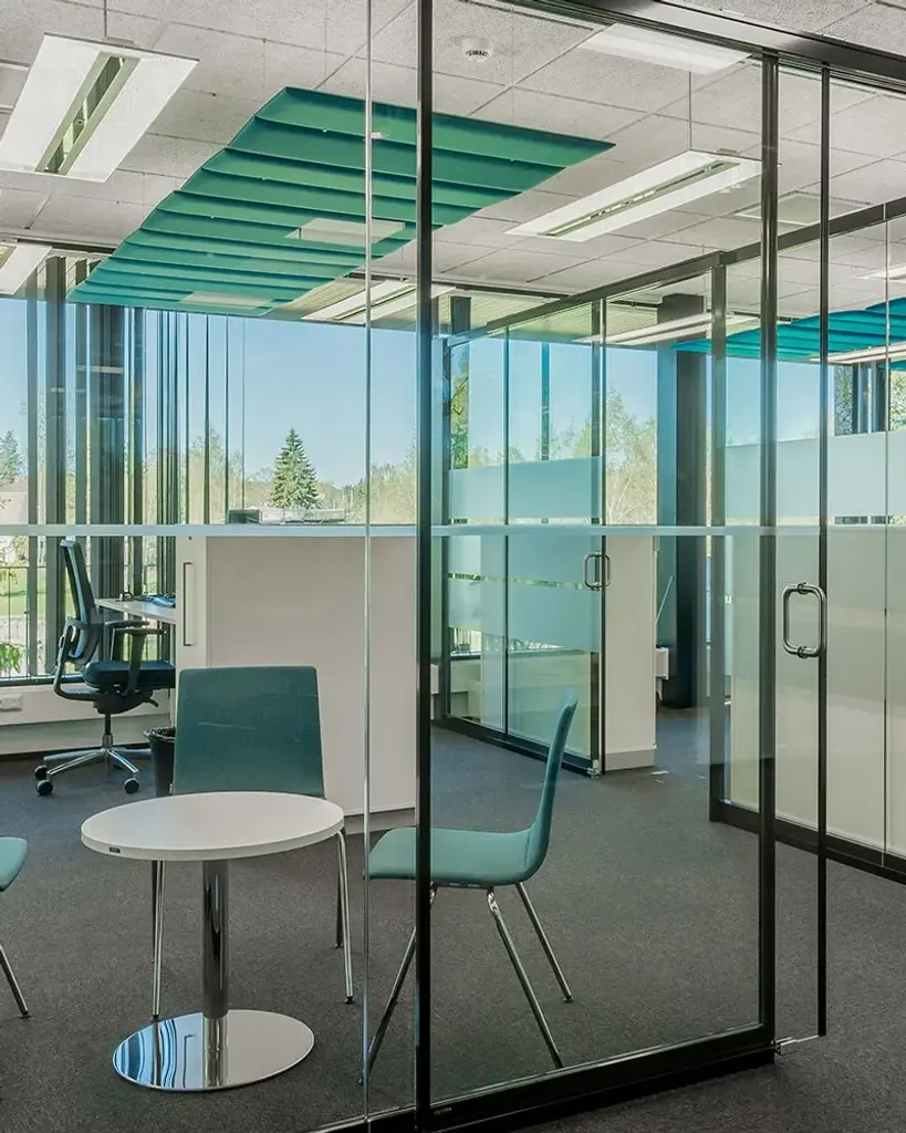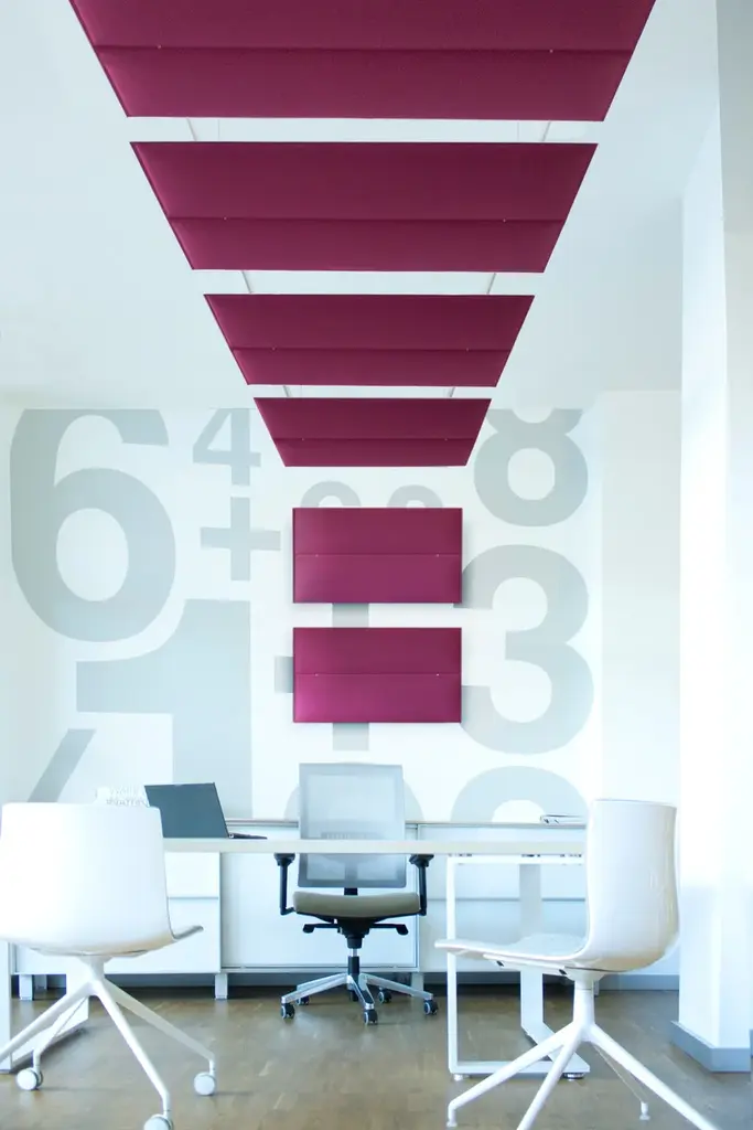 ECOstrong are polyester fibre acoustic ceiling cloudsECOstrong is a sound absorbing thermoformed panel, but not only. In fact, this product allows for punctual deliveries but also for creating systems.With the same panel, wall and ceiling corrective actions can be implemented, thanks to the distribution of panels applied with suction cups, magnets or cables, or created self-supporting self-supporting, practical and colorful totems.But in case of openspace? ECOstrong becomes an element of a modular system that allows you to create workstations and separators that are 3D-looking, pleasing to the eye and highly performing. ECOstrong, like all ECOline panels, is extremely lightweight and suitable for any type of environment where acoustic comfort is desired.ECOstrong is a versatile tool for the designer, who wants to give life to his own design in freedom, guaranteeing a comfortable sound effect.Acoustic Test: Uni En Iso 354:2003 | Uni En Iso 11654:1998Fire Certificate: B-s2, d0Applications: Wall, Totem, Freestanding, Desk, Ceiling, BaffleFinishes and colors: Trevira CS, ECOfelt, PETfelt, TWEEDECOrange is a collection of thermobonded panels, with variable density, which arise from an engineered process.Lightweight, high performance and single material, the panels of this collection offer many options, size, shape and finish.