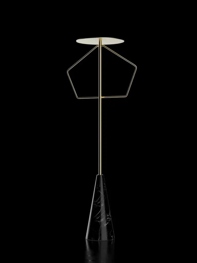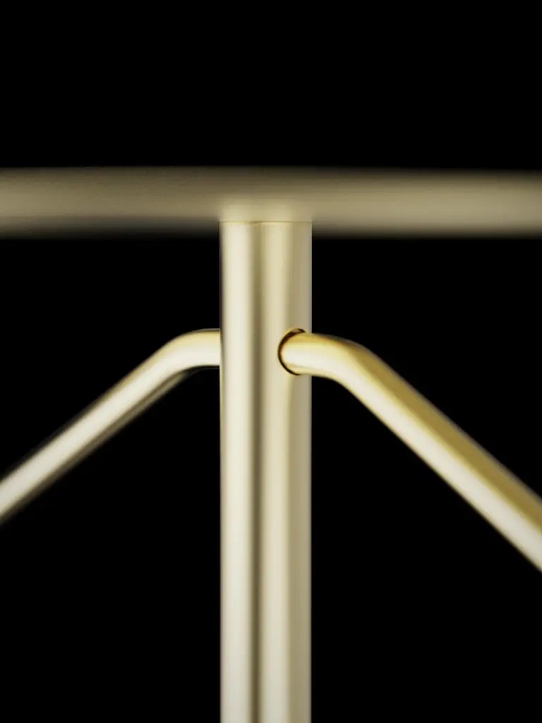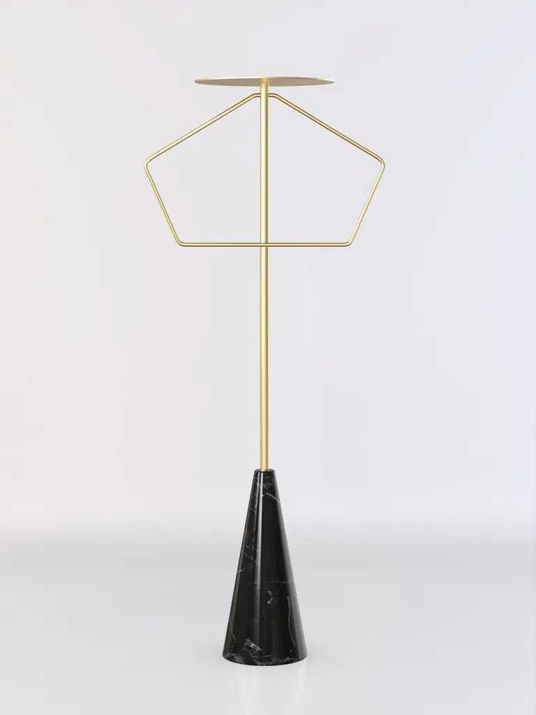Valet stand with Marquinha black stone base and brushed brass structure.