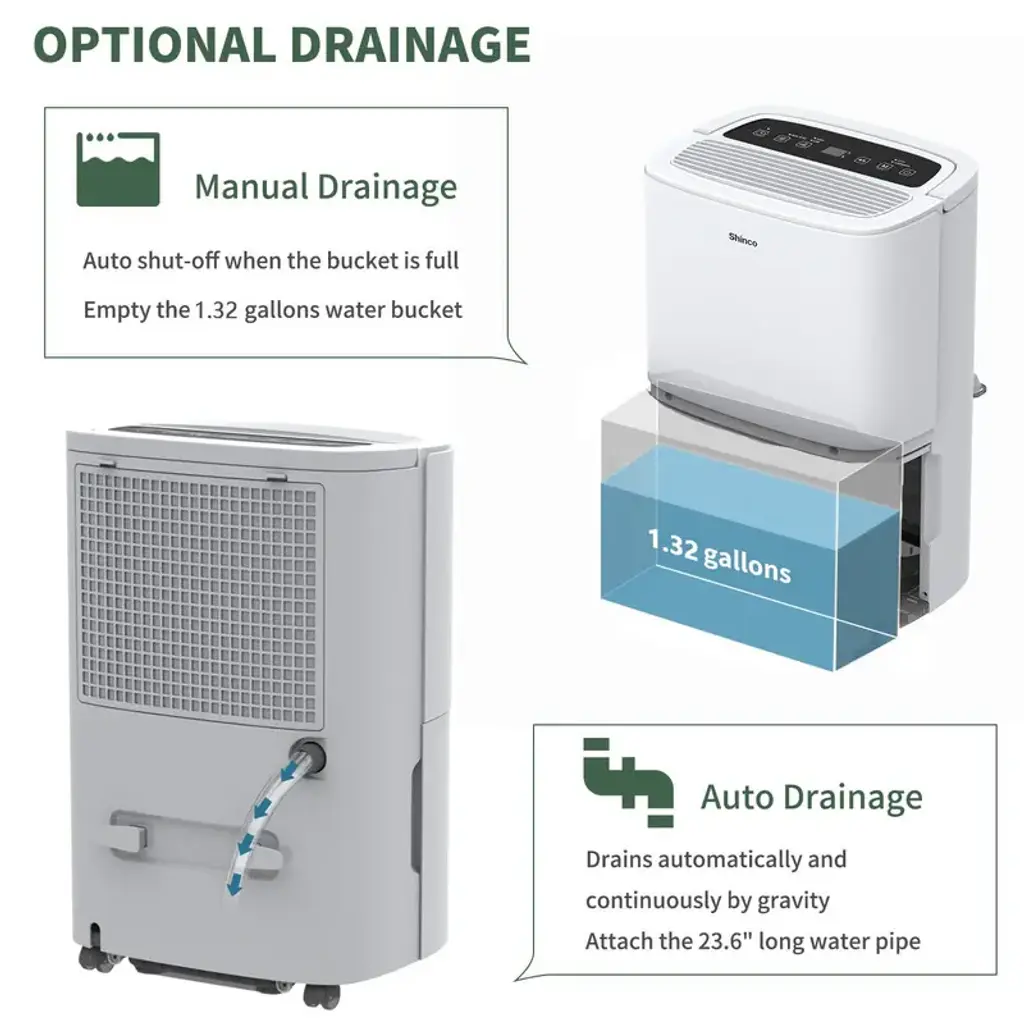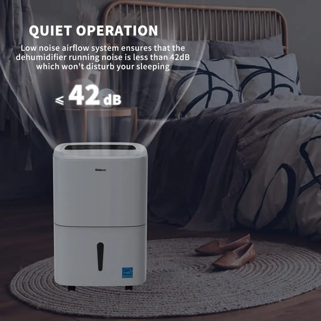 Shinco is committed to researching, designing, and manufacturing air conditioner & dehumidifiers over 20 years. This 50 pt. dehumidifier features an 8.45 pt. removable bucket with a water level indicator. Ideal dehumidification area up to 3,000 sq.ft. The perfect dehumidifier for homes, basements, garages, cellars and laundry rooms.