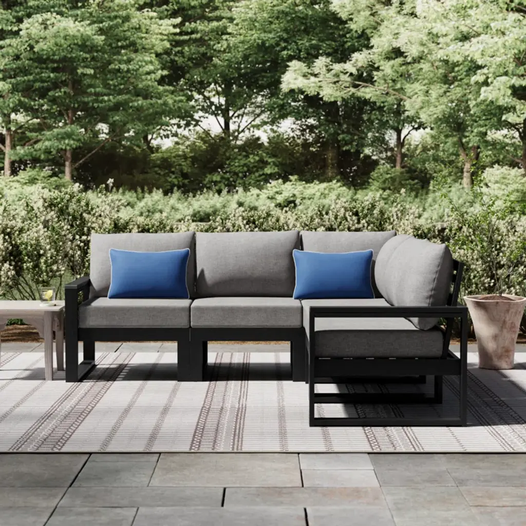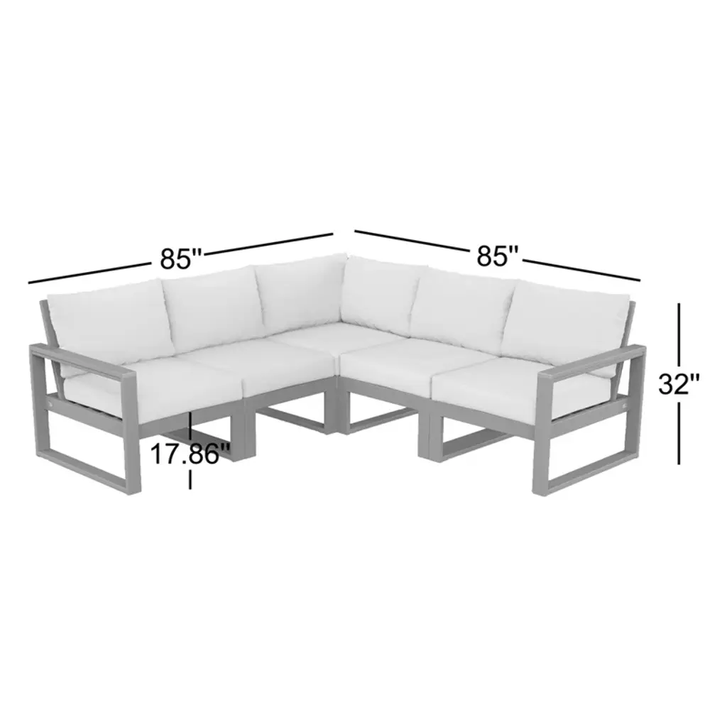 Designed for comfort and style, the EDGE modular collection is scaled for a variety of outdoor living areas — from a spacious patio to an intimate balcony. Custom-fit this modern modular set to your outdoor space with one of three configurations. With sleek, angular lines, the EDGE 5-piece modular deep seating set seats four to five people and features plush pillow-back cushions as well as supportive seat cushions covered in high-performance outdoor fabric.