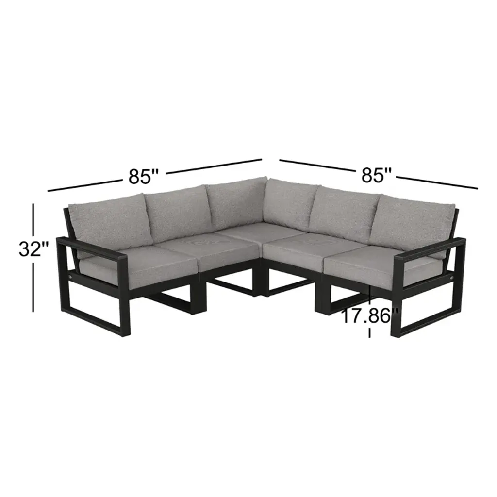 Designed for comfort and style, the EDGE modular collection is scaled for a variety of outdoor living areas — from a spacious patio to an intimate balcony. Custom-fit this modern modular set to your outdoor space with one of three configurations. With sleek, angular lines, the EDGE 5-piece modular deep seating set seats four to five people and features plush pillow-back cushions as well as supportive seat cushions covered in high-performance outdoor fabric.