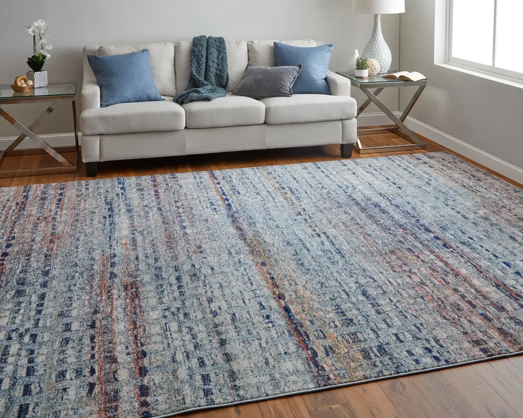 Edgemont Modern Abstract - Blue/ivory/orange - Clearance - 10' X 14' Rectangle