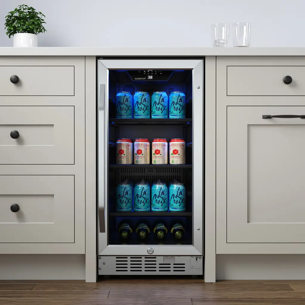 Edgestar 15 Inch Wide 80 Can Built-In Beverage Cooler With Blue Led - Stainless Steel