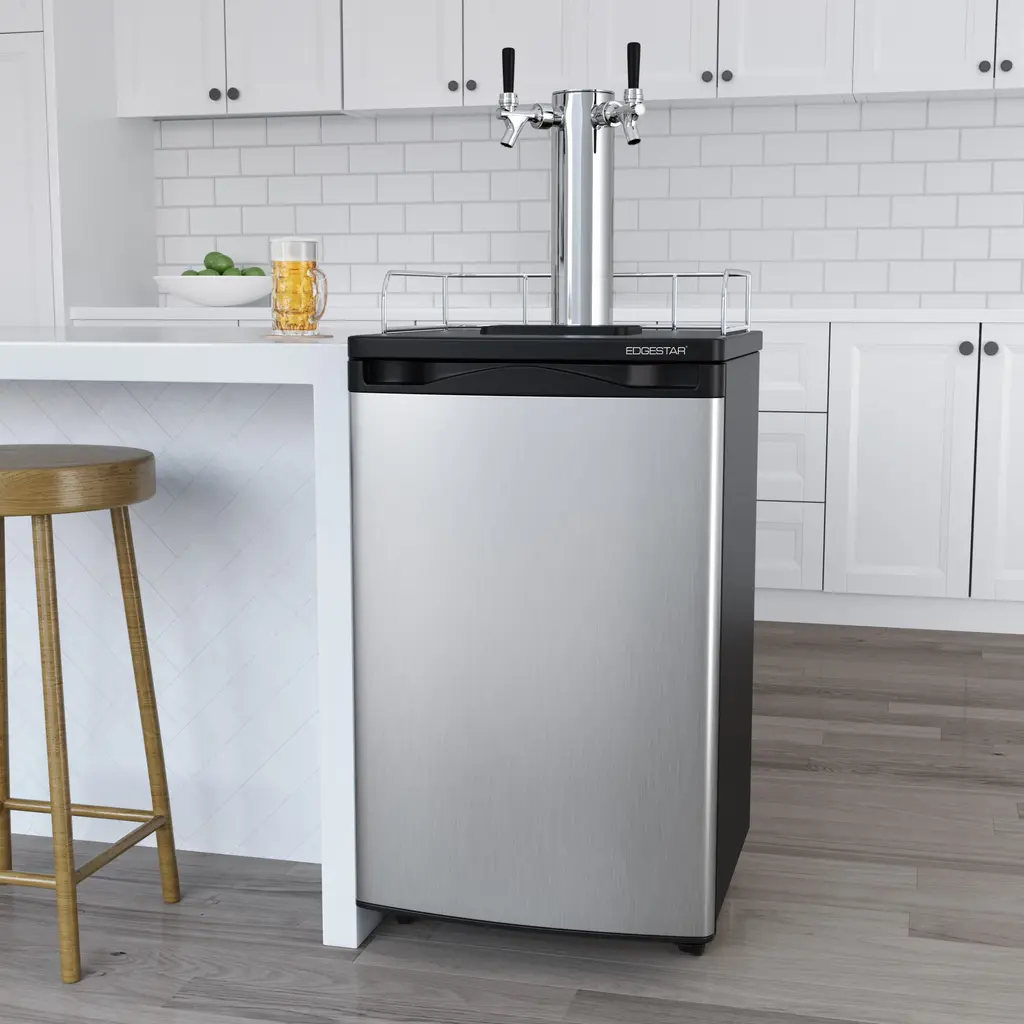 Edgestar 20 Inch Wide Dual Tap Kegerator For Full Size Kegs With Ultra - Black