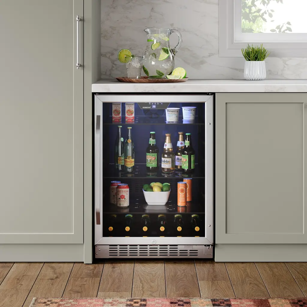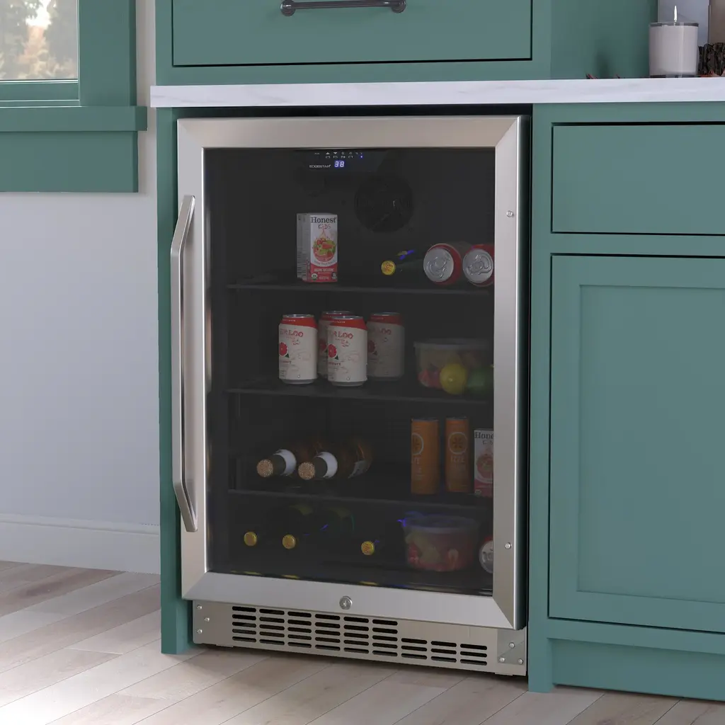 Edgestar 24 Inch Wide 142 Can Built-In Beverage Cooler With Tinted - Stainless Steel