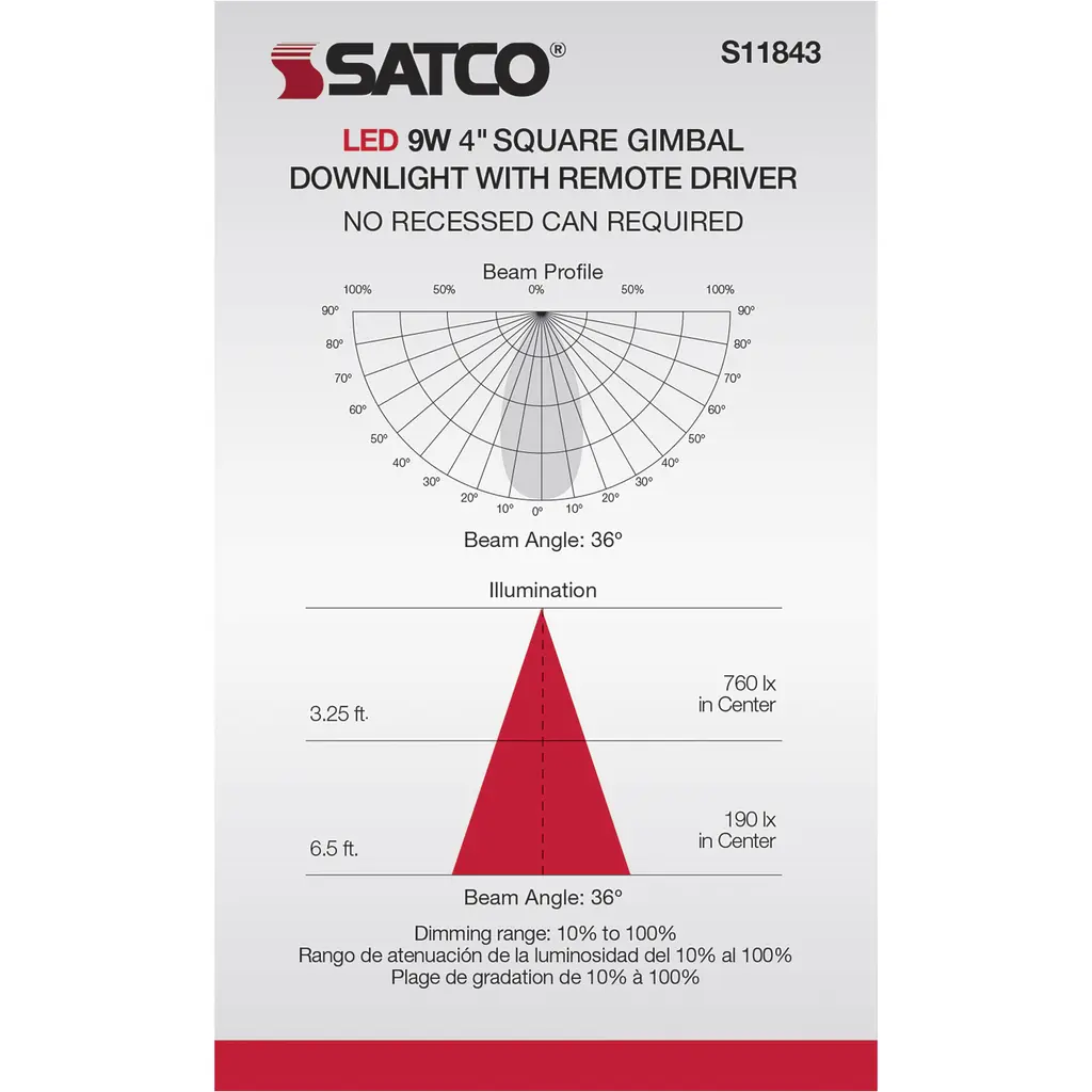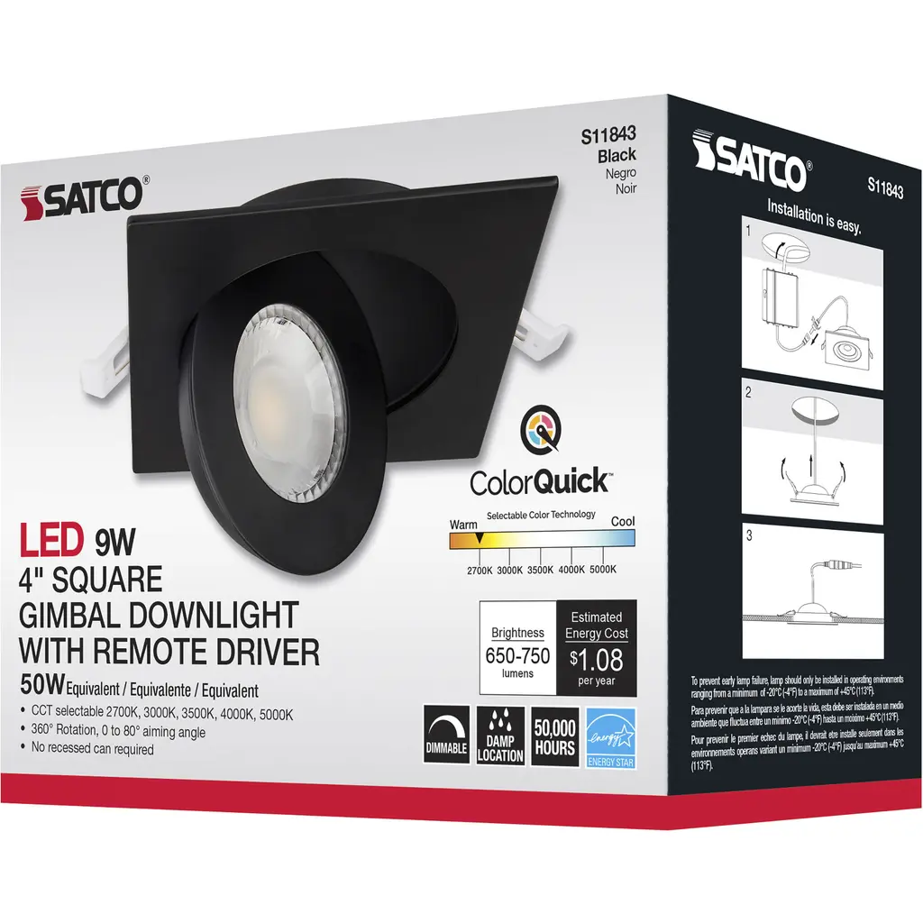 9 Watt; CCT Selectable; LED Direct Wire Downlight; Gimbaled; 4 Inch Square; Remote Driver; Black