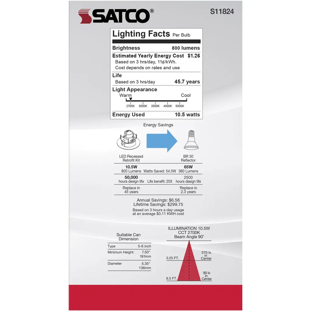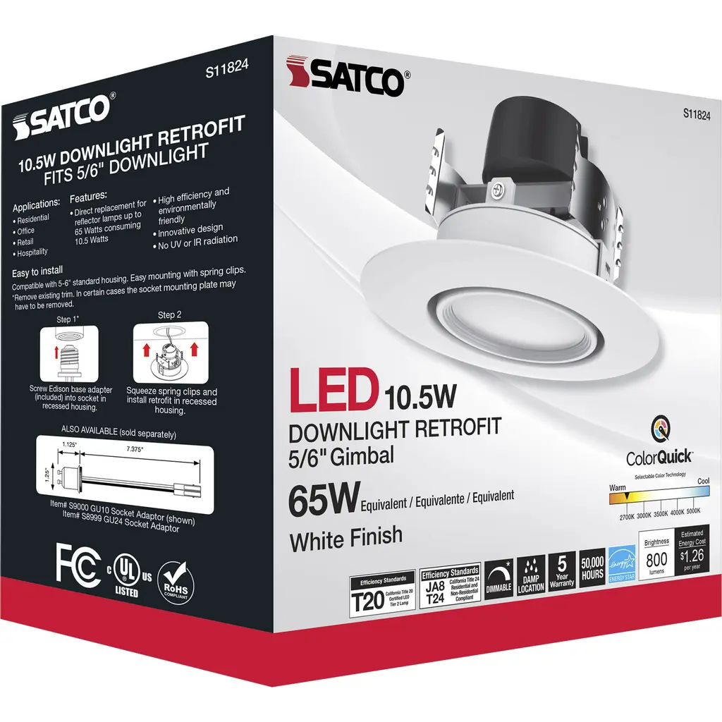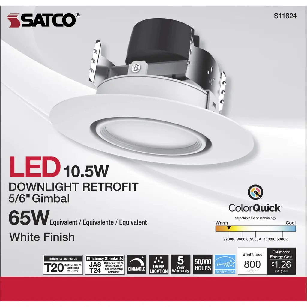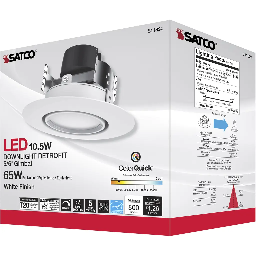 10.5 Watt LED Directional Retrofit Downlight - Gimbaled; 5-6 in.; Adjustable Color Temperature; 90 deg. Beam Angle; 120 Volt