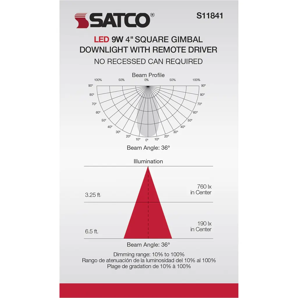 9 Watt; CCT Selectable; LED Direct Wire Downlight; Gimbaled; 4 Inch Square; Remote Driver; White